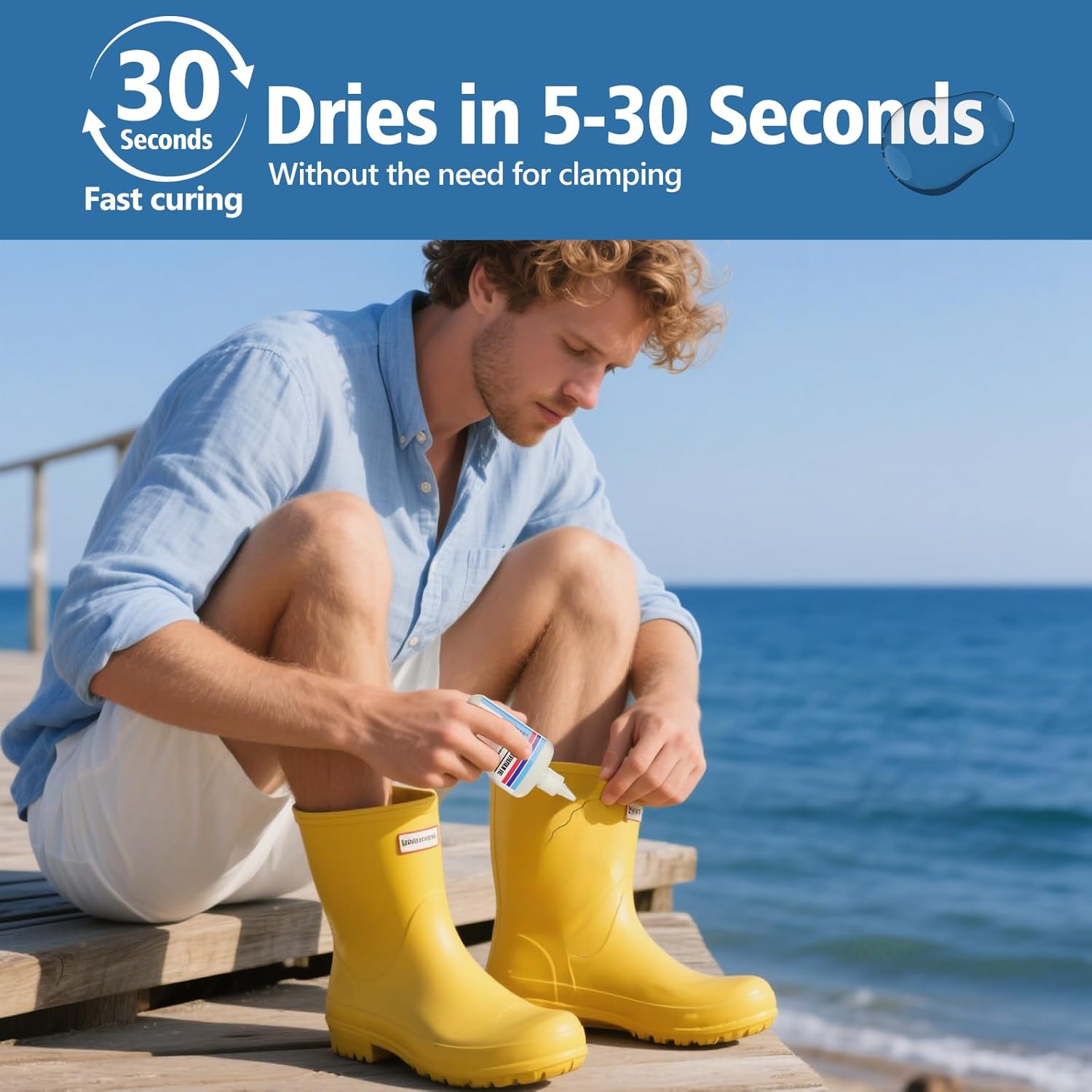 - ⭐Fast And Versatile And Efficient: Instant rubber glue bonds in just 5-30 seconds,including RC tires, seals, refrigerator gaskets, shoe soles, and more. It is designed to withstand bending, torsion, and harsh environments.