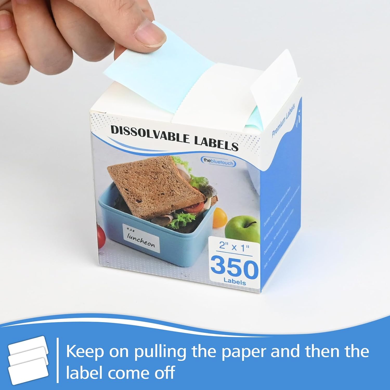 350 Blank Dissolvable Labels 1x2 Inch, White Washable Dissolvable Food Labels for Storage Containers, Canning, Jar, Bin (1 Roll - 350 Stickers)