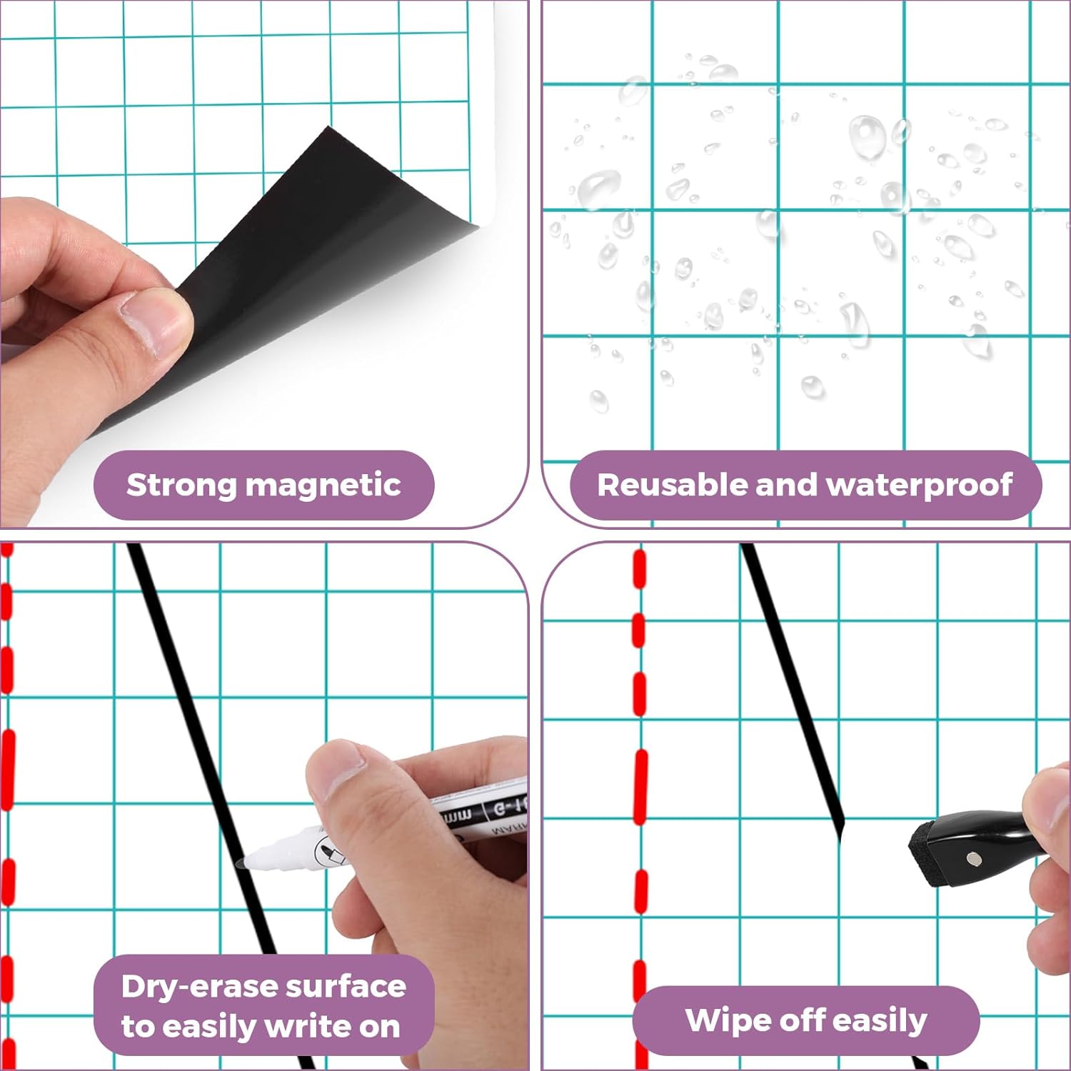 - Large Size Magnetic Dry Erase Whiteboard Sheet: Dry erase paper measures 17"x22" and 1.3"(32.8mm) spacing between the horizontal lines and offers plenty of space for handwriting or graphing to easily see at a distance. The Dry erase magnets set is great for teachers to making classroom demonstrations