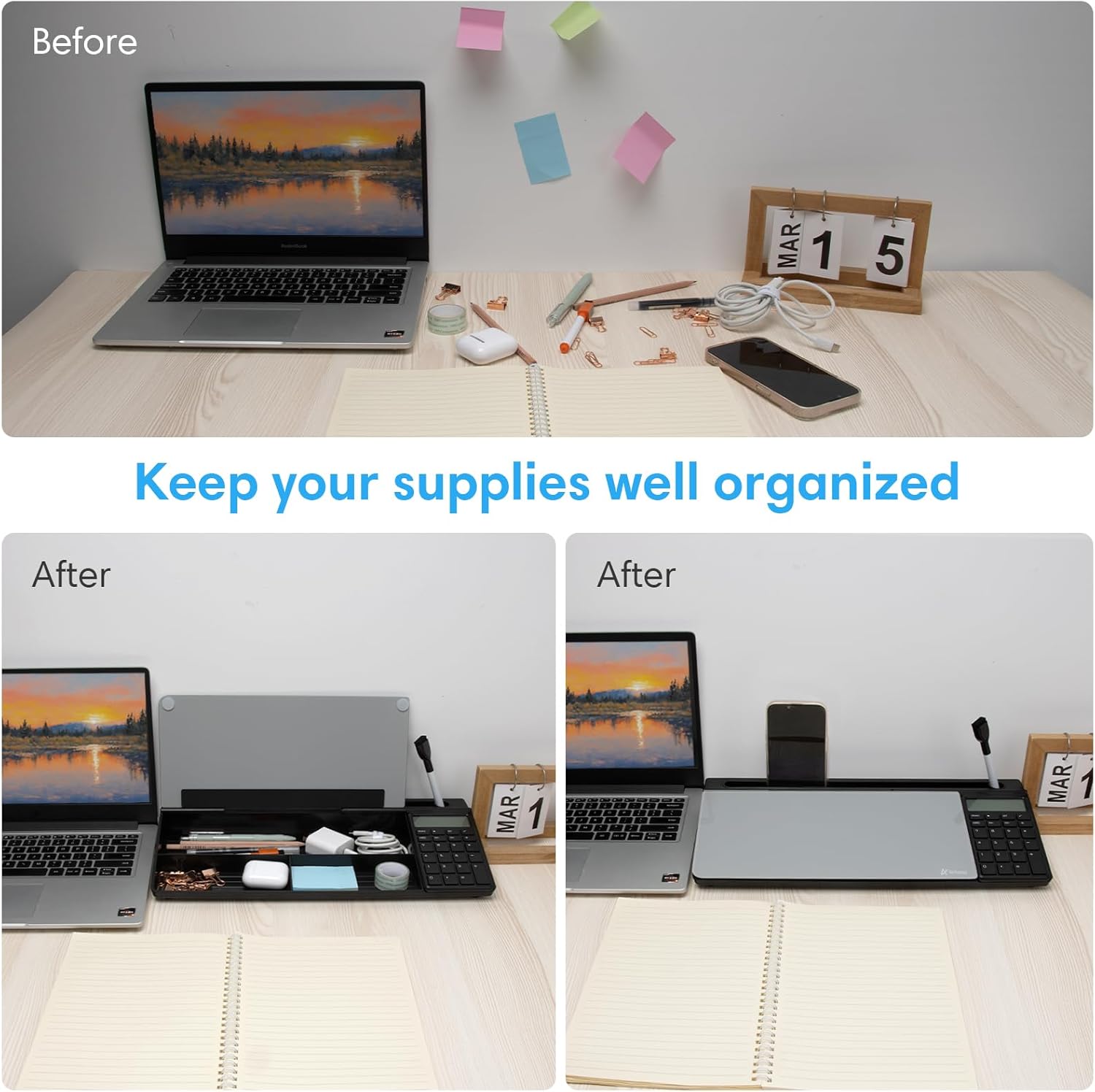 - Multi-functional Design: Sitting compactly between your monitor and keyboard, you can use it as a desk to do list whiteboard, or phone charger, or phone/tablet holder, or keyboard stand. It can used for your office task organization, family schedule and workout plan