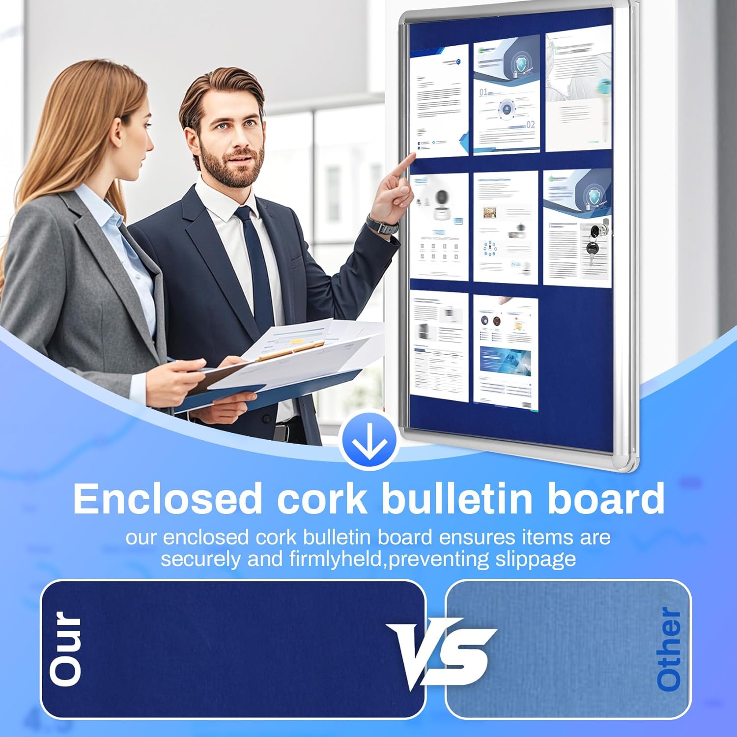 - SECURE AND PROTECTED NOTICE BOARD: Enclosed bulletin board keep important information safe from the elements, theft, or tampering with lockable acrylic doors and key mechanisms.Save valuable wall space and maintain a clean and organized appearance in offices, schools, or community centers.