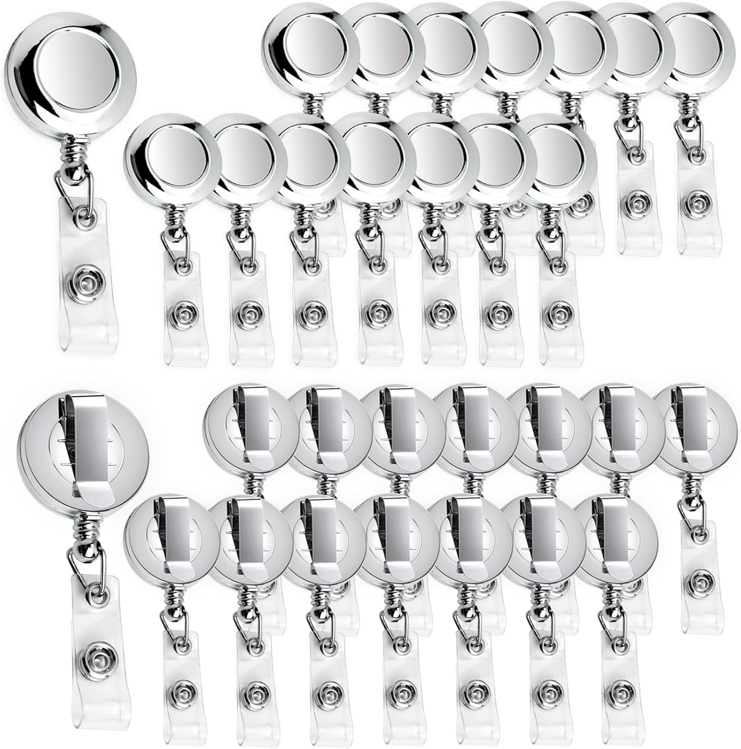 30 Pack Badge Holders, Silver Retractable Badge Reels, Durable Metal Spring Clip (Silver) - 24 Inch Retractable Cord Lanyard