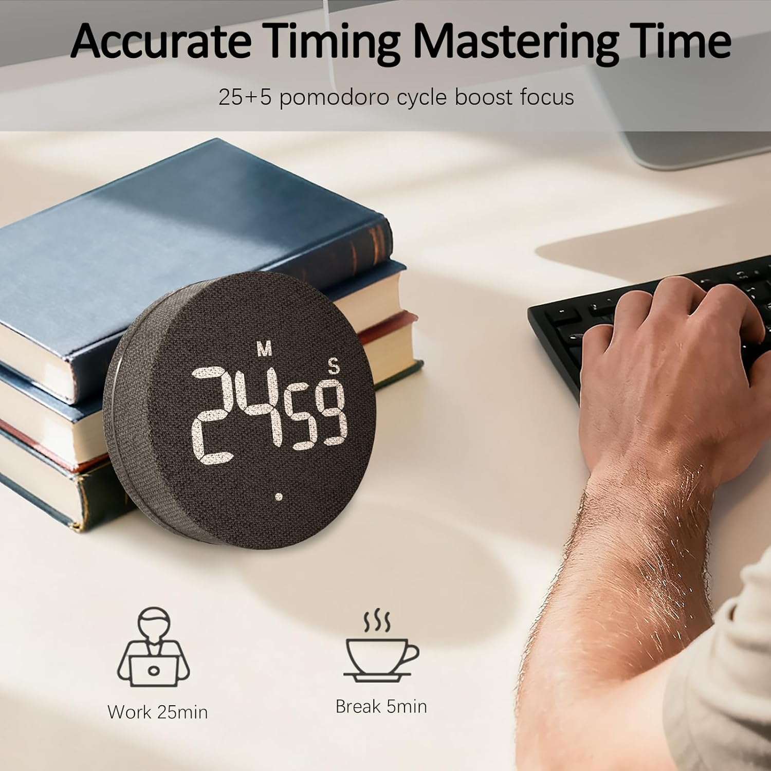 - 【Enhanced Productivity & Stylish Design】: Our efficana timer and konah home timer features a premium fabric mesh cover for a soft touch and elegant look. This desk timer for productivity blends seamlessly into kitchens, offices, or living spaces, promoting better focus and time management.