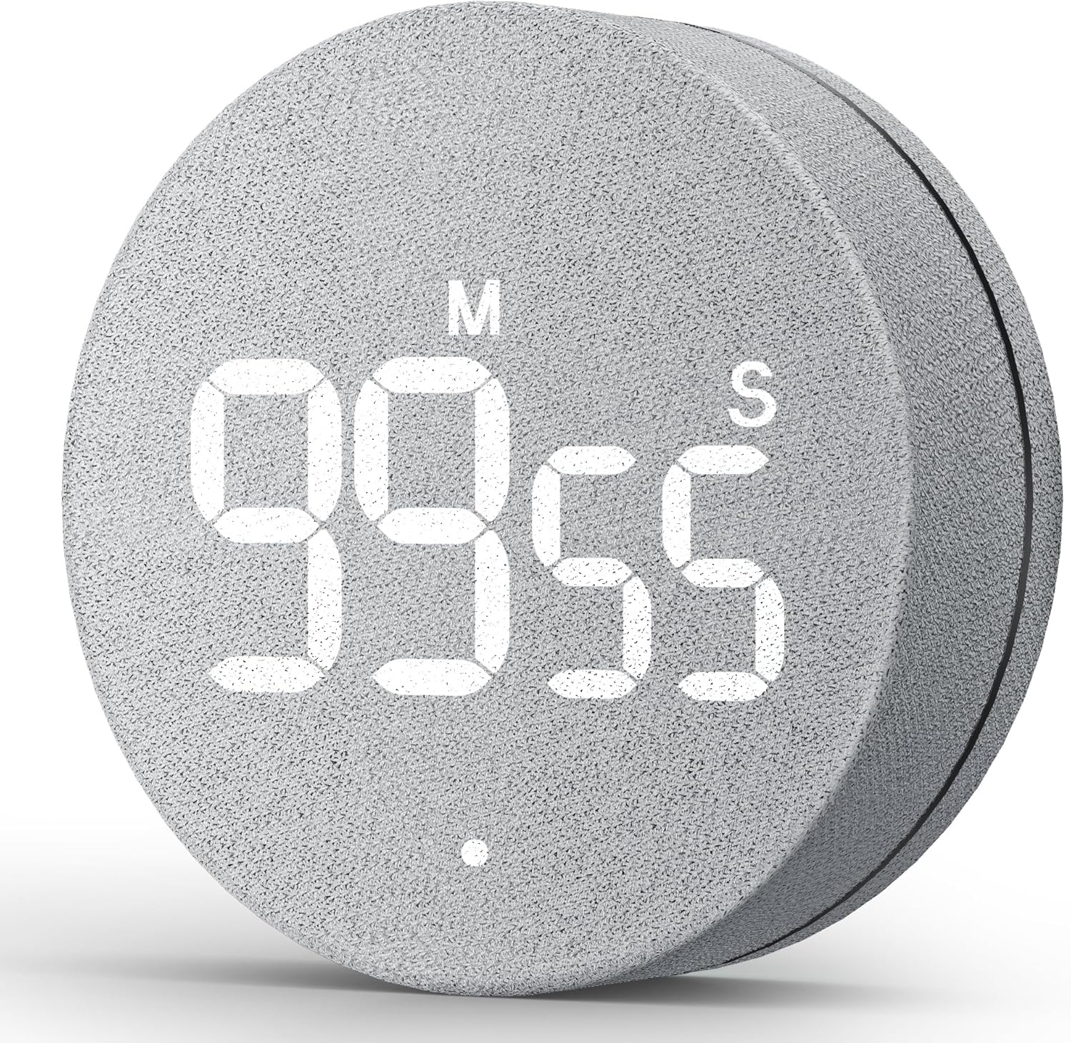 AVINIA Fabric Digital Kitchen Timer, Rechargeable with Large LED Display 0-99Mins, Magnetic Countdown Timers for Home Classroom Office Fitness Grey