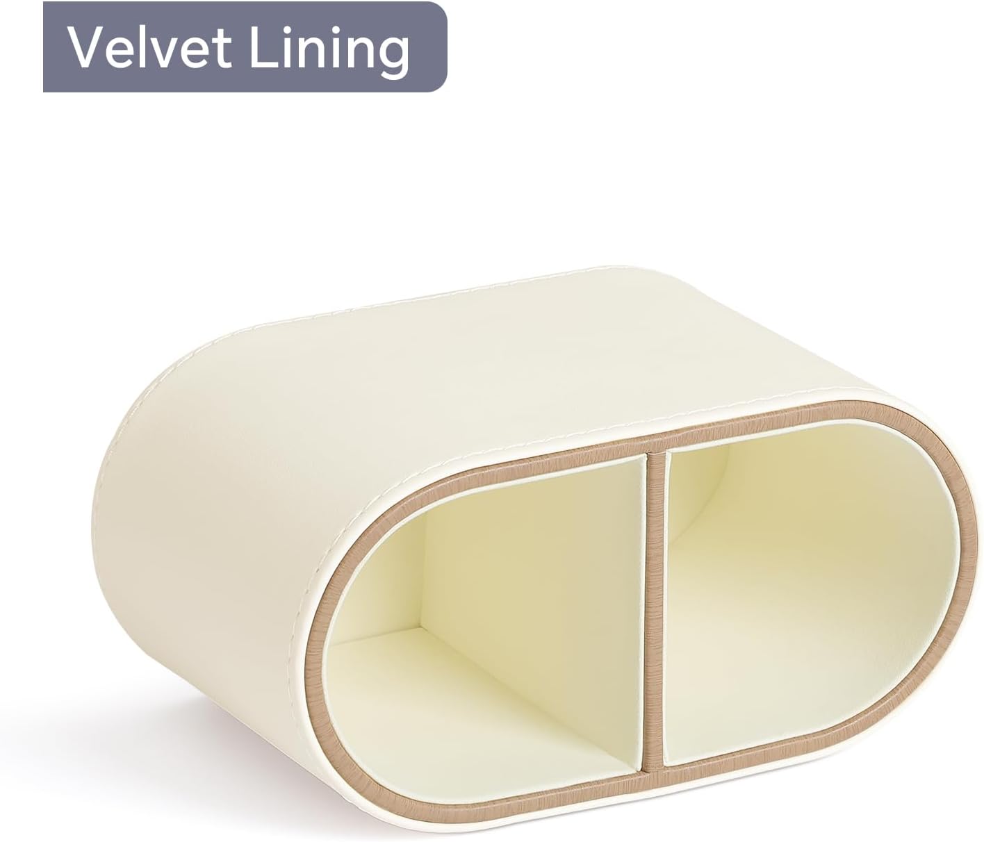 - SLEEK OVAL SHAPE & DUAL SLOTS: This desk pen holder features a graceful rounded design with two compartments for organized storage