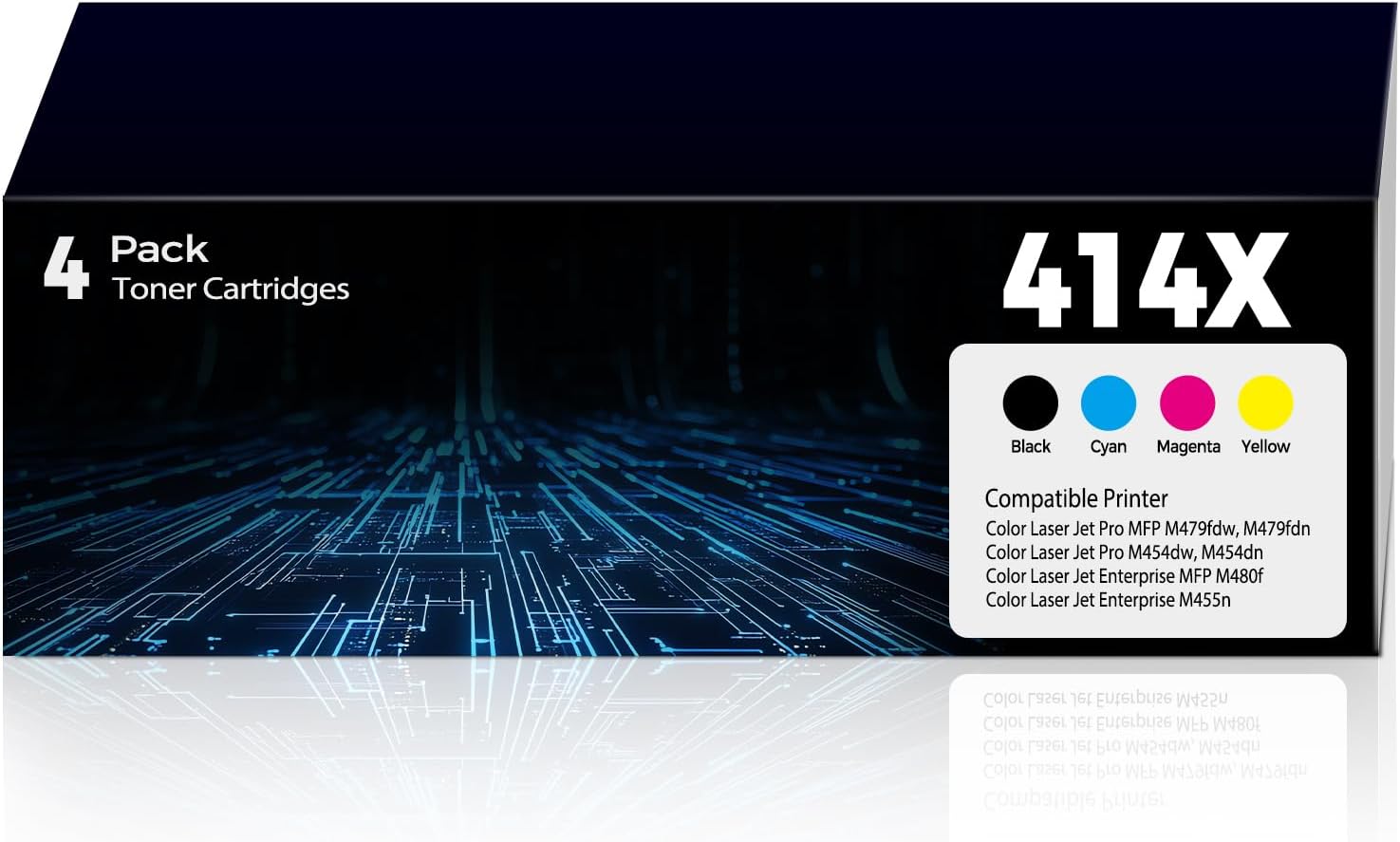 - Package Content: 1 x 414X black toner cartridge, 1 x 414X yellow toner cartridge, 1 x 414X cyan toner cartridge and 1 x 414X magenta toner cartridge. 4 Pack 414X cartridges in total.