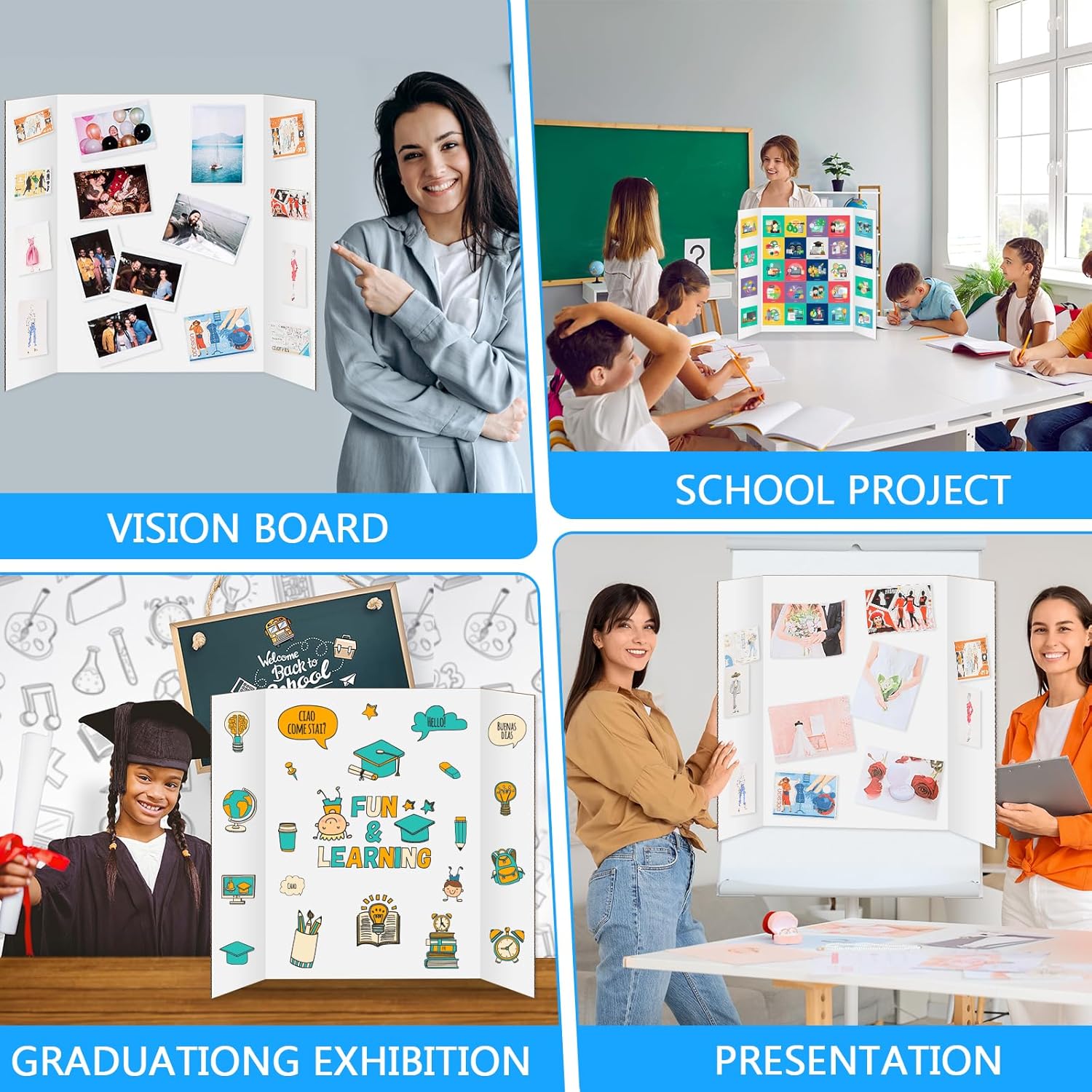 - Easy to Use: Tri fold design allows for easy set up and display, saving you time and effort, perfect for classroom crafts and DIY supplies.