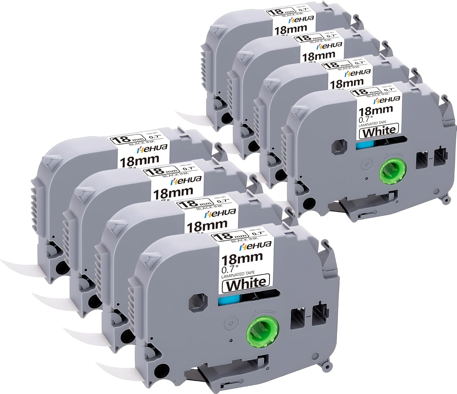 Hehua Compatible 8PK TZe TZ Tape 18mm 0.7 Laminated White Label Replacement for Brother Label Maker Tape TZe-241 TZe241 TZ-241 for P Touch PTD400 PTD600 PTP750W PT1880, 3/4 X 26.2ft, Black on White
