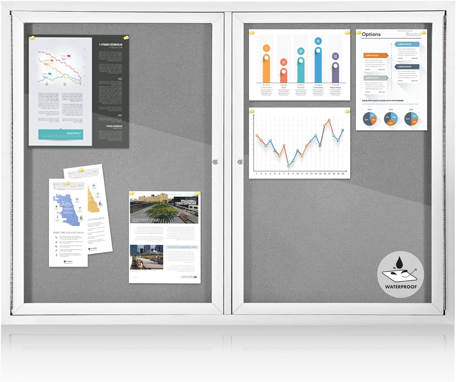 Outdoor Bulletin Board Weatherproof 48x36 in,Enclosed Bulletin Board with Locking Door, Wall Display Case for Office School Home Commercial, Silver Aluminum Frame, Gery Felt