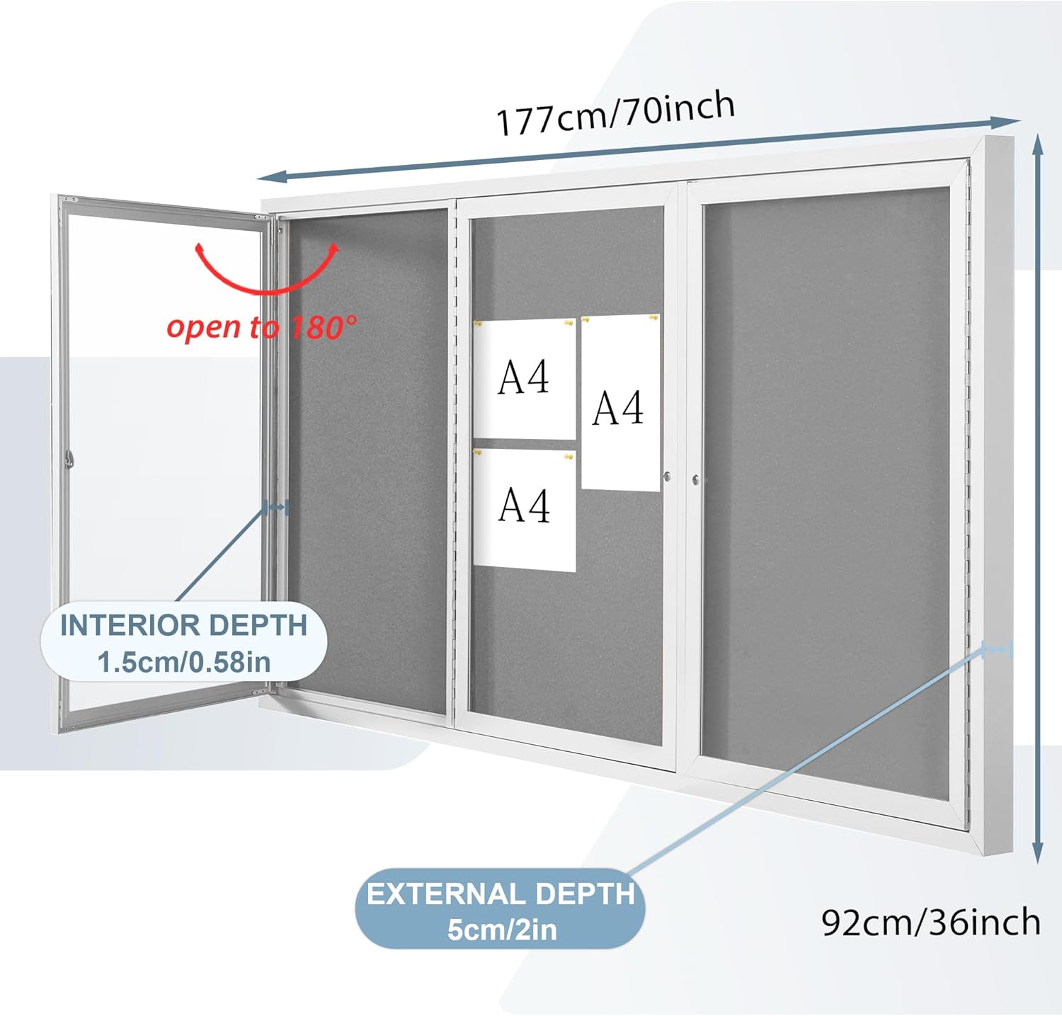 - HIGH-QUALITY MATERIAL:It is made of grey felt pin board, waterproof aluminum construction, shatter-resistant acrylic door and aluminium-plastic panel