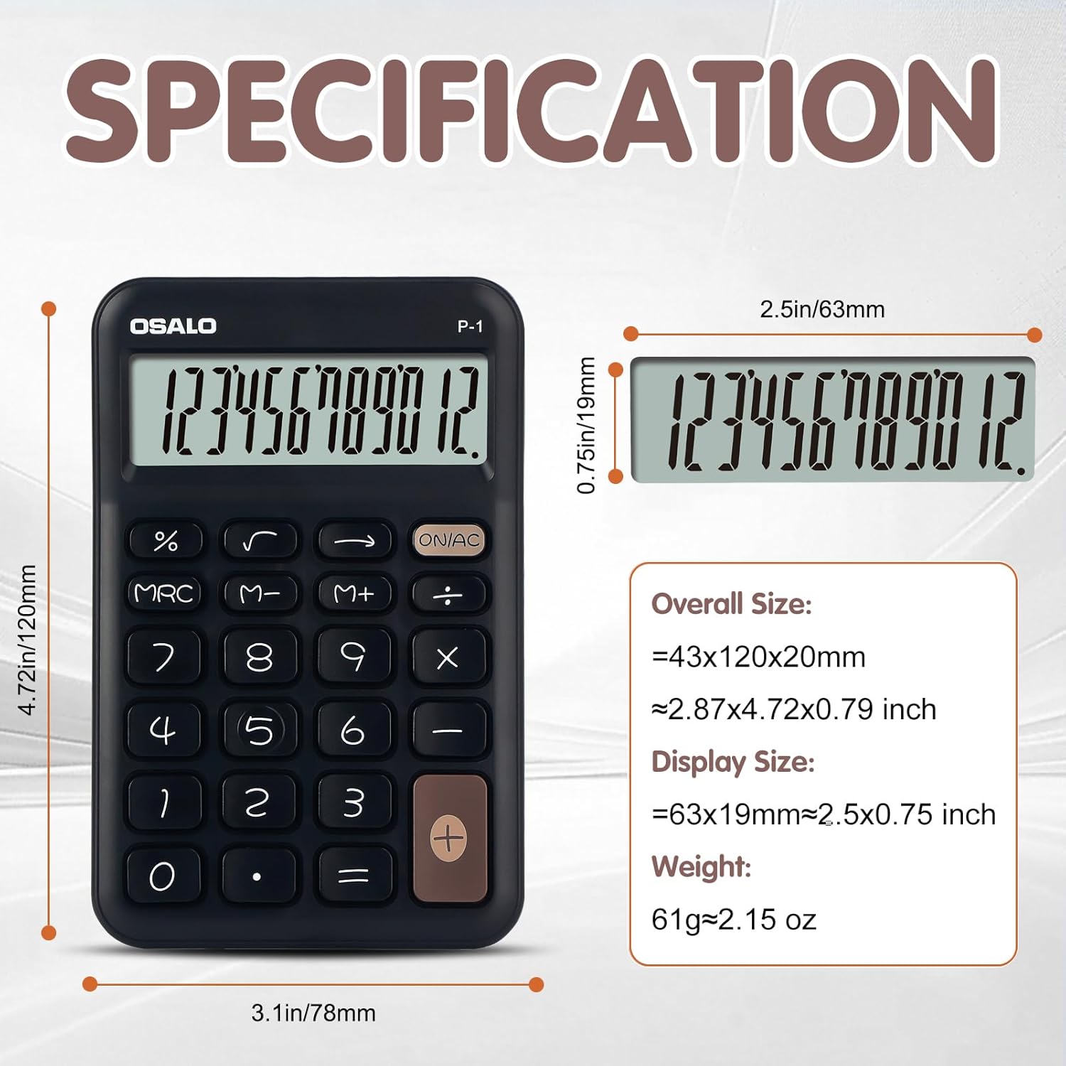 - 【12-Digit LCD Display with Advanced Functions】Unlike typical 8-digit mini calculators, our 12-digit LCD screen provides ample space for your daily use. Enhanced with % key, square root, and MRC/M+/M- memory function, it handles budgeting and multi-step math with ease.