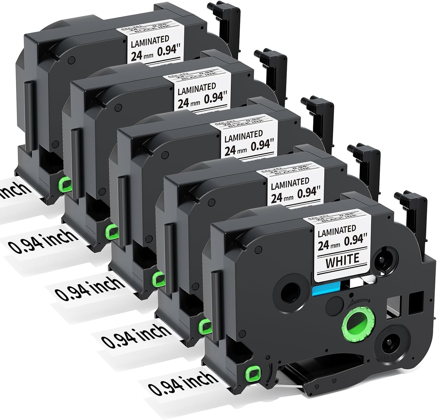 - Package included: 5-Pack compatible with brother p touch 24mm 0.94 inch laminated white label maker tape, TZe-251 TZe251 TZ 251 label tape refill.