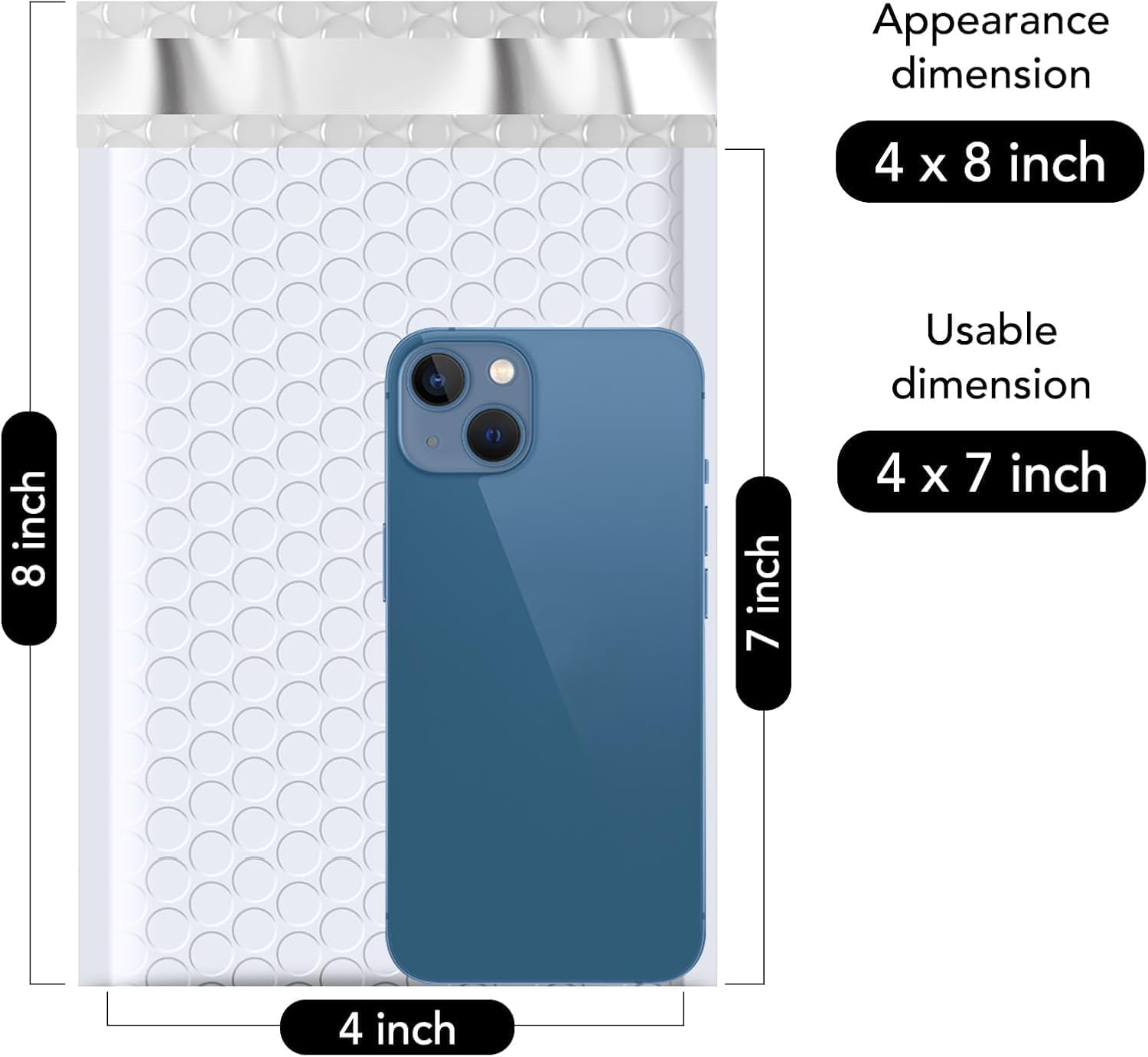 - Perfect Size 000 White Bubble Mailers: The poly bubble mailers outer size is 4x8 inch, while the inner size is 4x7 inch. It is very suitable to transport for jewellery, makeup, cards, phone case, Lips, photos,handcraft and more. Great for small business packing,shipping gifts cushioning mailer.