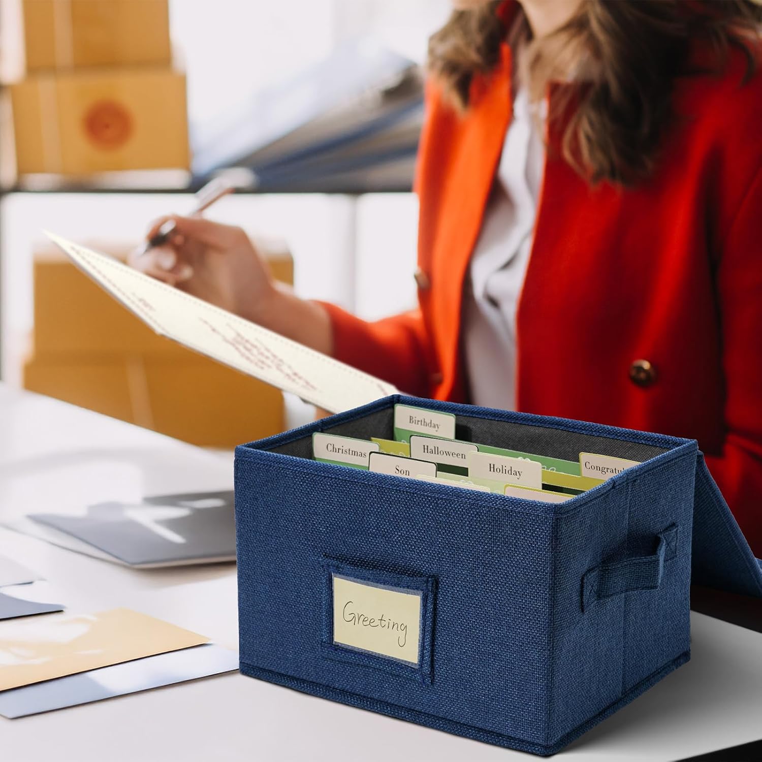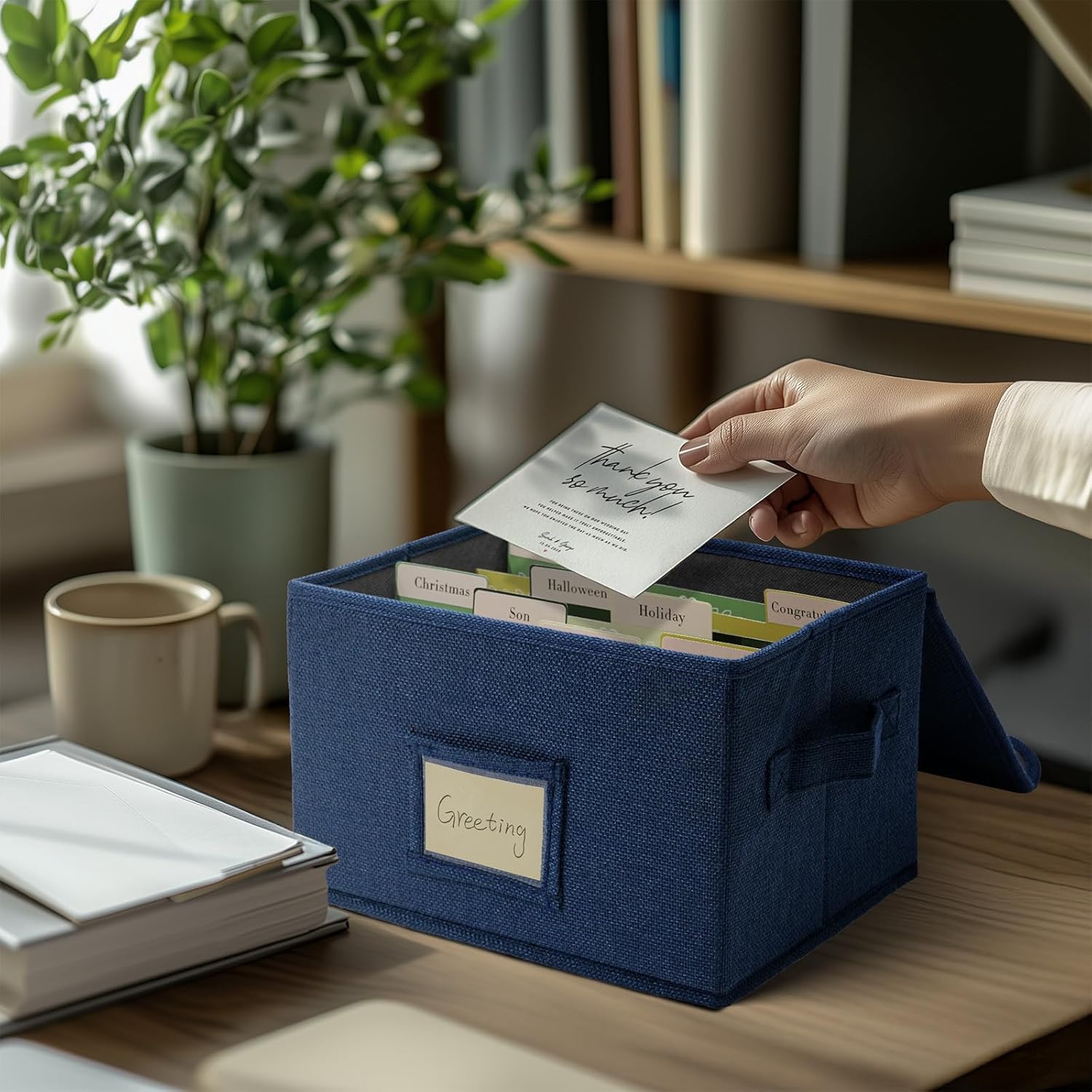 Vienrose Greeting Card Organizer Storage Box with 20 Removable Dividers, 84 Self-stick Labels, Perfect for Photos, Envelopes, Scrapbooking, Paper, Stickers Holder 1 Pack Navy