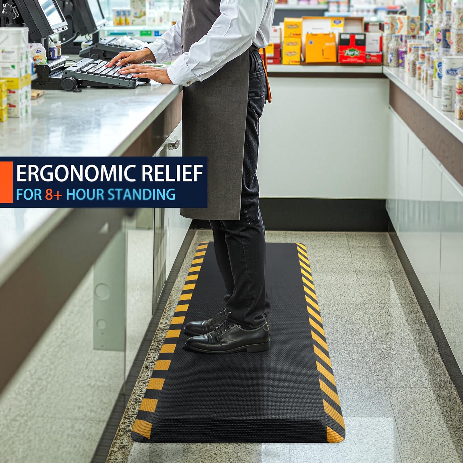 FEATOL Anti Fatigue Mat Industrial, Ergonomic Standing Floor Mat for Work for Stand, Black with Yellow Border Safety 24" x 36"-Support for Leg & Back Pain