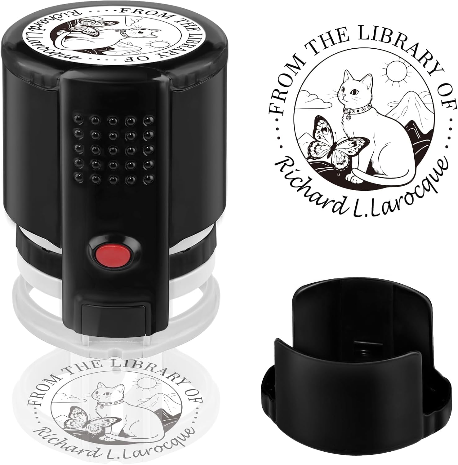 Custom Self Inking Stamp | Book Stamp Personalized Library Gifts for Book Lovers, Readers, Teachers (Cat 01)