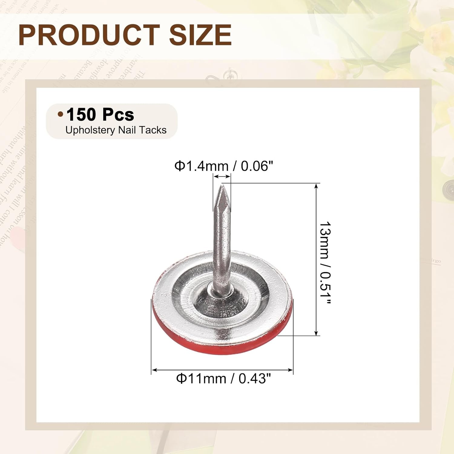 - [Size & Quantity] - The package comes with 150pcs decorative upholstery tacks. Sufficient quantity to meet your different daily needs. The overall size of upholstery nails is about 11mm x 13mm/0.43-inch x 0.51-inch(D*H)