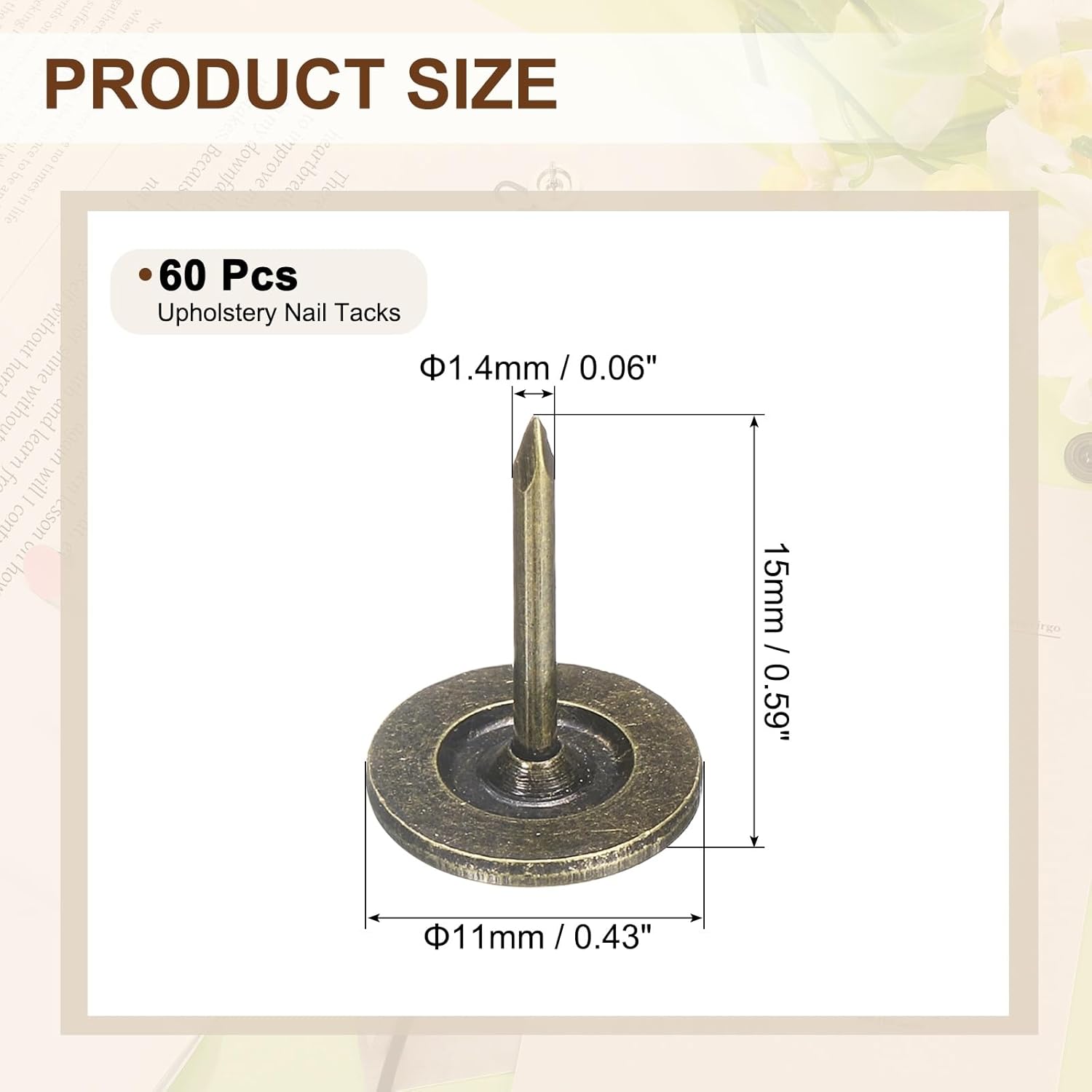 - [Size & Quantity] - The package comes with 150pcs decorative upholstery tacks. Sufficient quantity to meet your different daily needs. The overall size of upholstery nails is about 11mm x 15mm/0.43-inch x 0.59-inch(D*H)