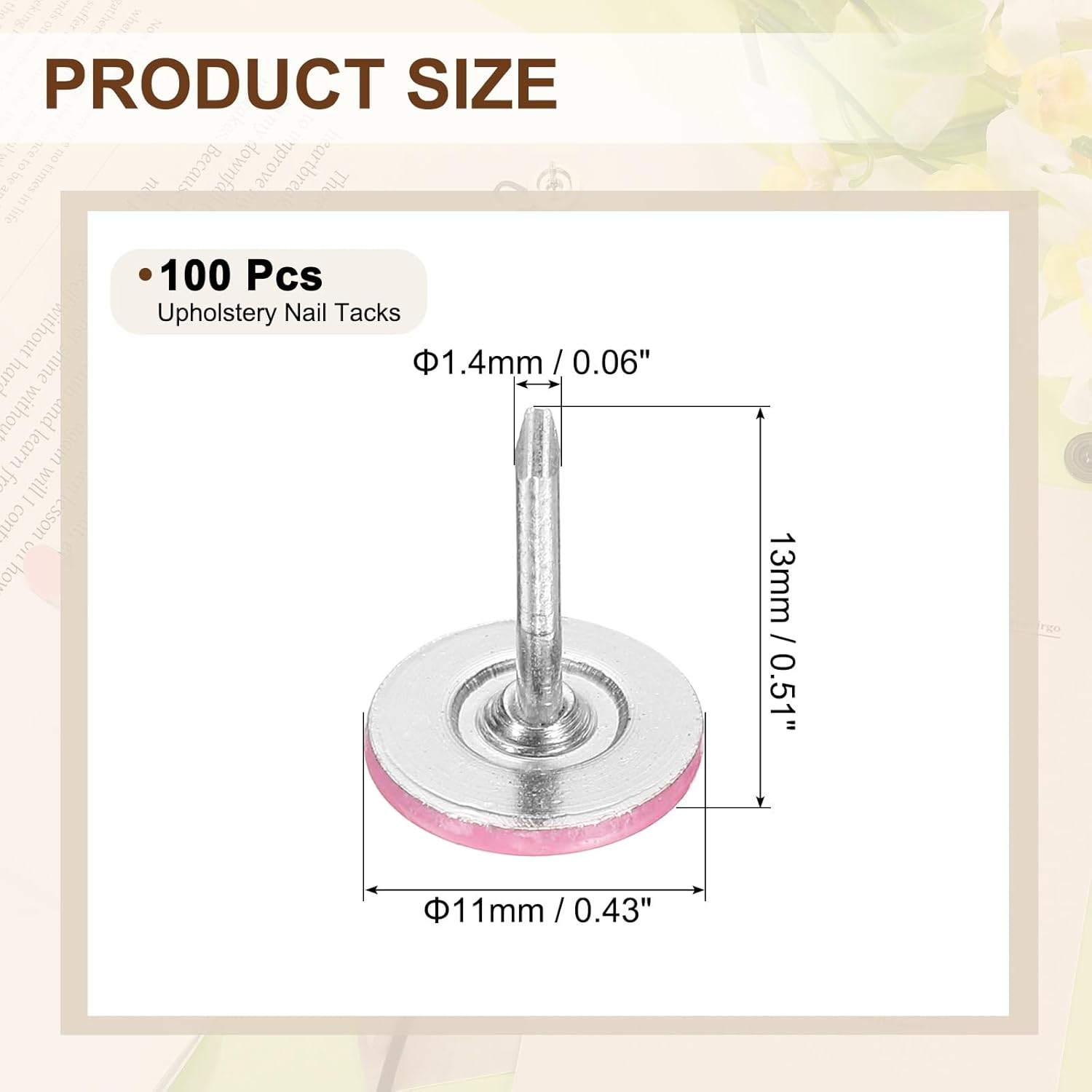 uxcell 100Pcs Upholstery Tacks, 11mmx13mm Flat Head Thumb Tack Decorative Furniture Nails Push Pins for Furniture Sofa Headboards, Pink