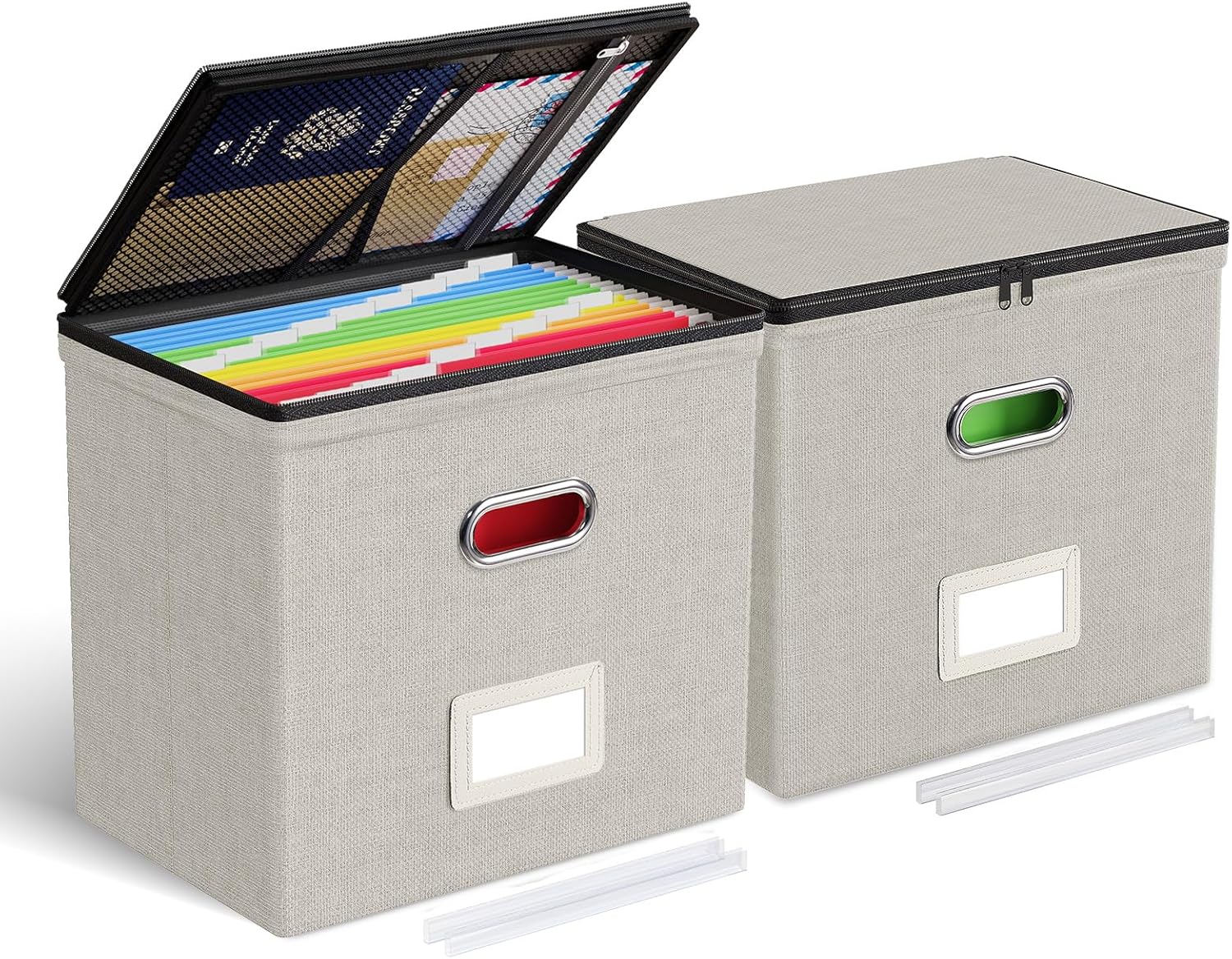- Protection & Privacy: The hanging file organizer with lid protects labels from distortion and tearing, while the double zippers offers dust protection, privacy, and security, ensuring a fully enclosed top with hidden folder hangers. When the lid is opened, the folders remain securely on the rails without falling off.