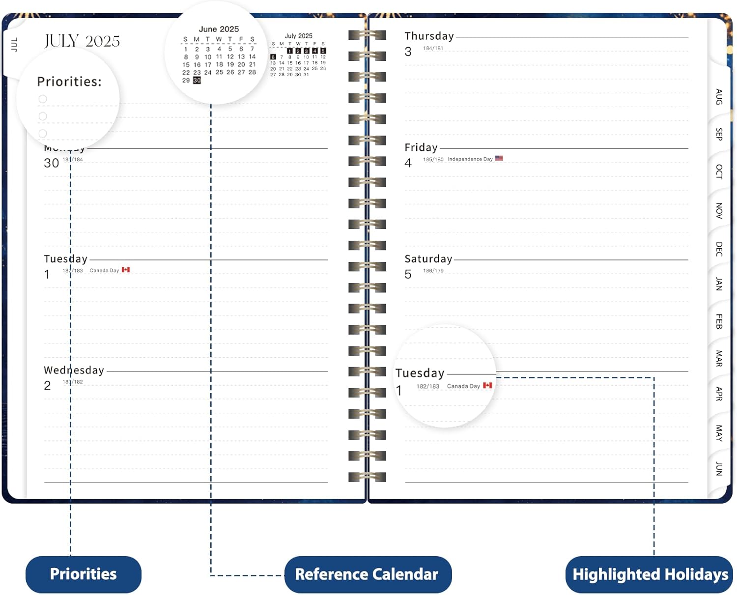 - [COMPREHENSIVE PLANNING] – This Planner 2025-2026 covers12 months from July 2025 to June 2026. It includes monthly and weekly calendar pages, providing ample room to track exams, meetings and important events - making it a useful organizational tool for your entire academic or work year.