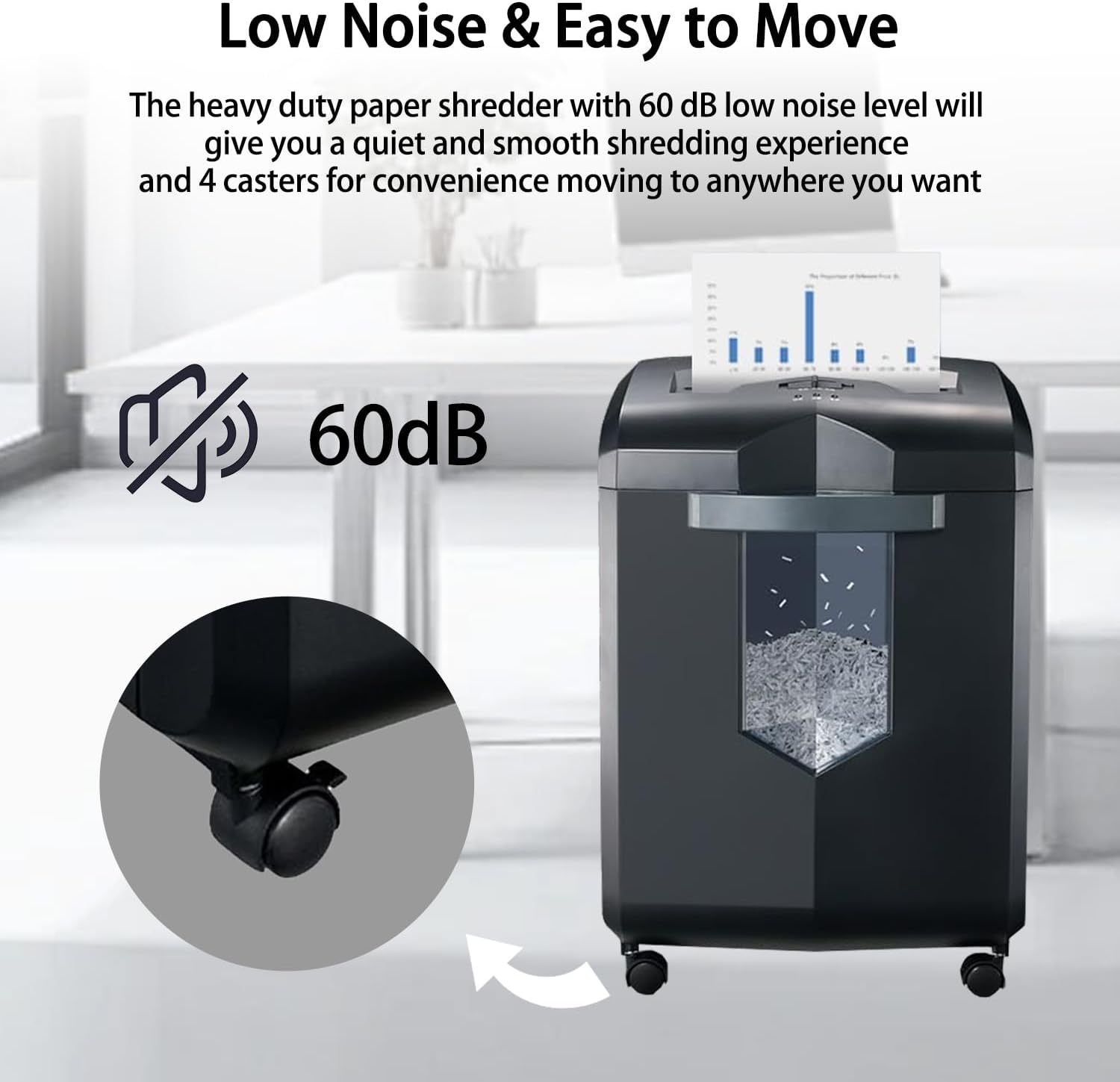 - Low Noise & Easy to Move: This heavy - duty shredder operates at a low 60 - dB noise level for a peaceful experience. Equipped with 4 casters, it can be easily moved to any desired location.