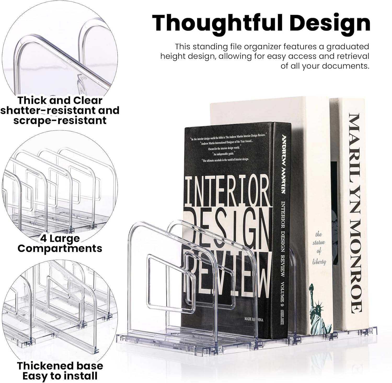 - 4-Section Organization: Effortlessly sort letters, files, notebooks, and office supplies across four vertical compartments. This office organizer layout provides immediate visual access to all contents while keeping your desktop perfectly organized