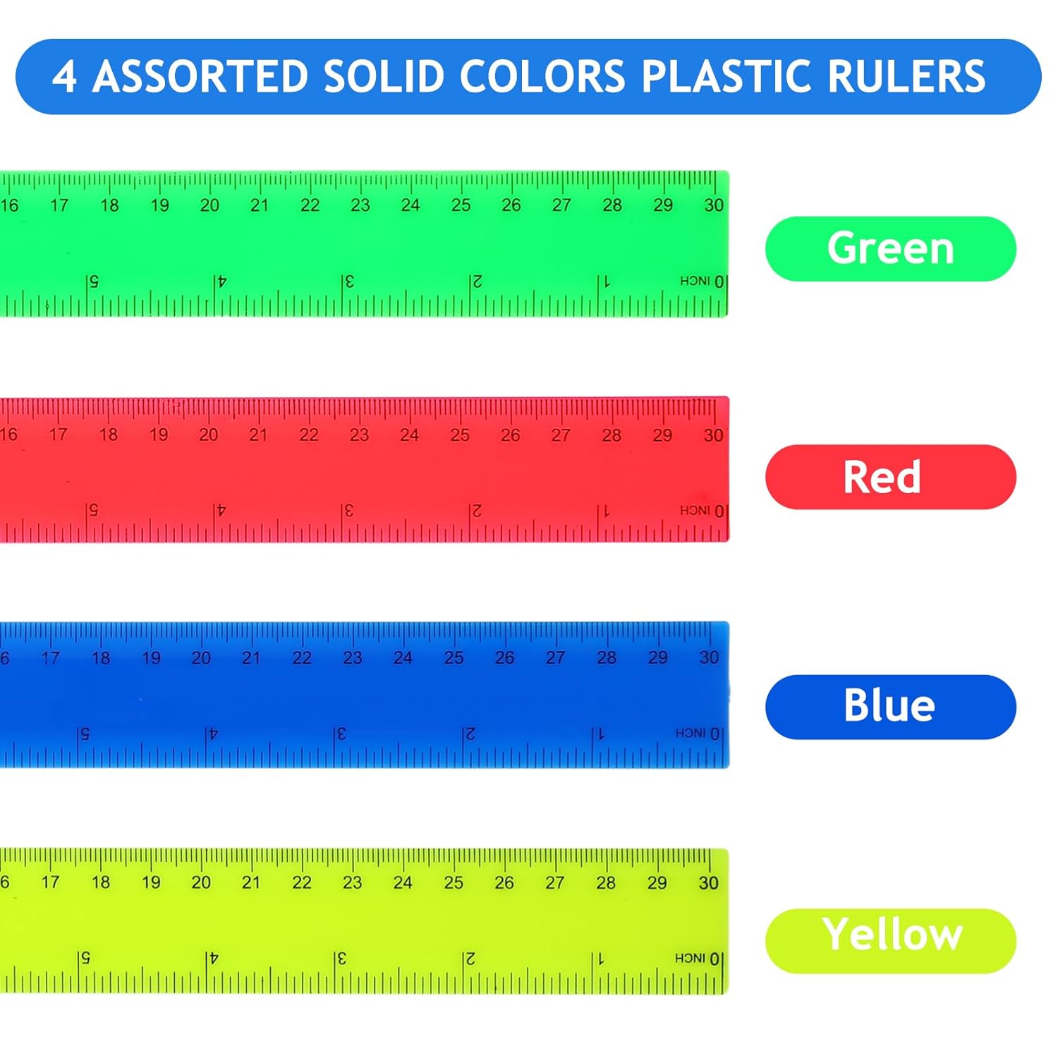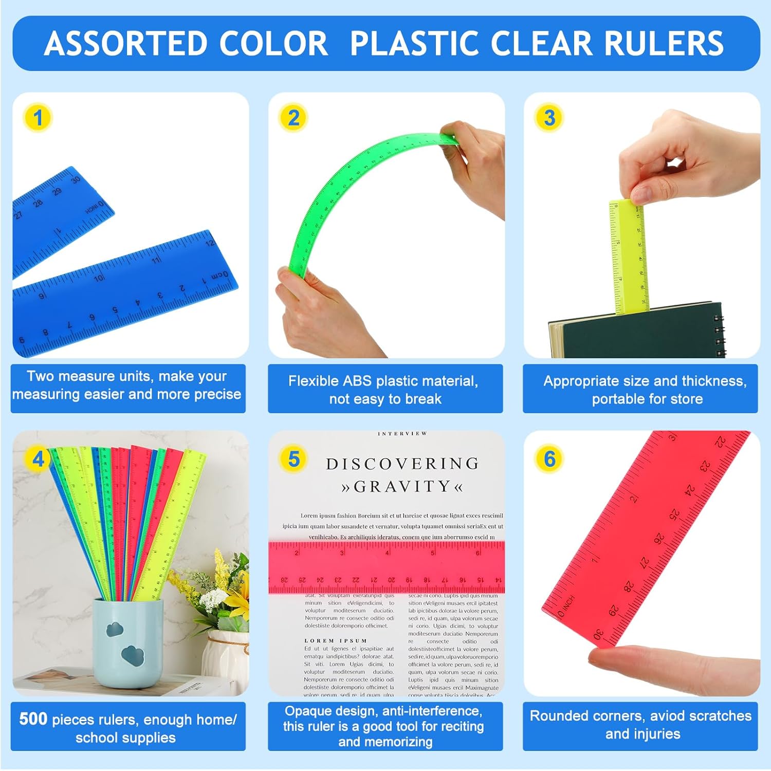 - Colorful Plastic Rulers: you will receive 500 pcs plastic rulers in 4 different colors including yellow, green, red and blue, and each color has 125 pieces rulers, sufficient quantity for your daily use and replacement, which can also be shared as a nice gift to your family members, coworkers, kids, teachers, classmates and so on, showing your care to them