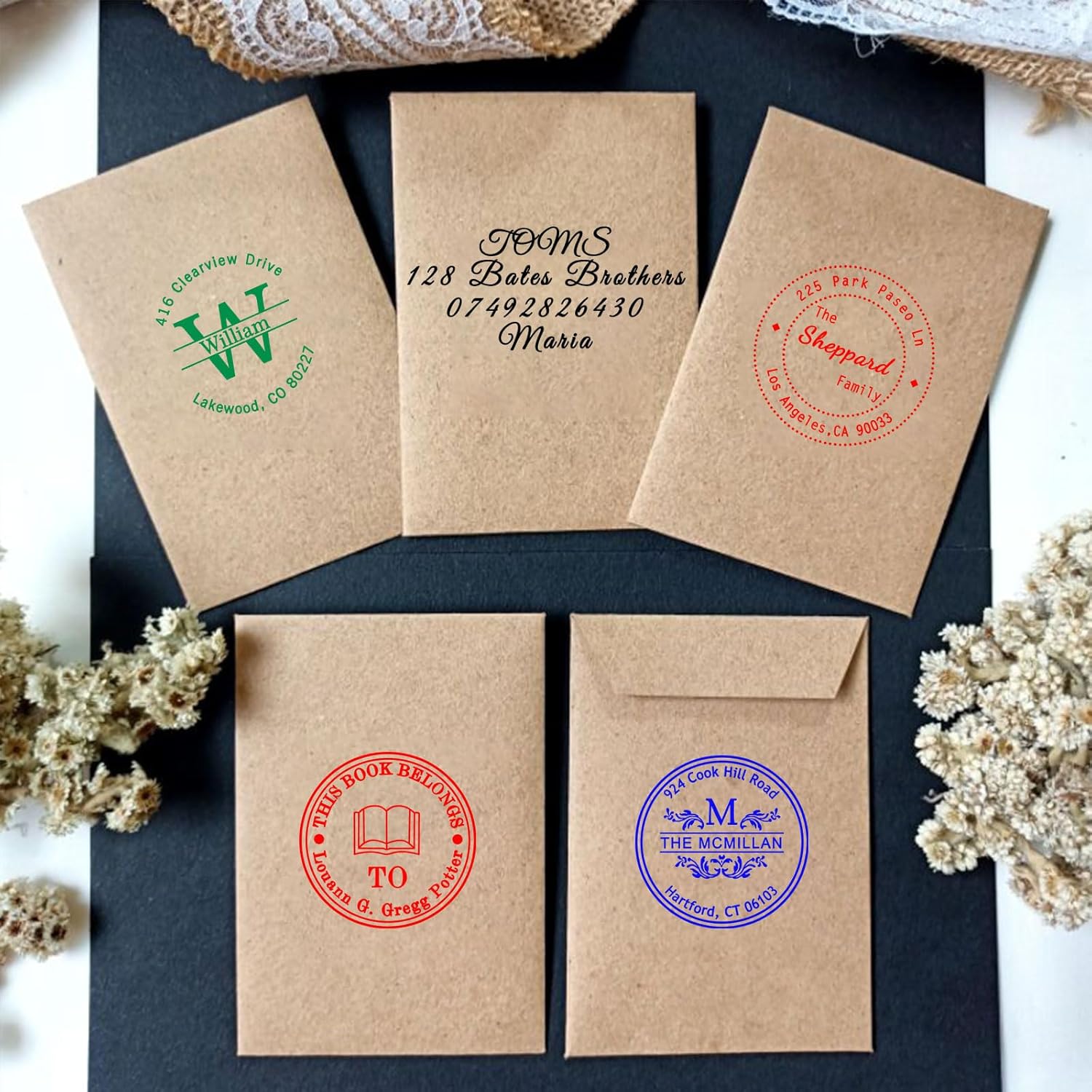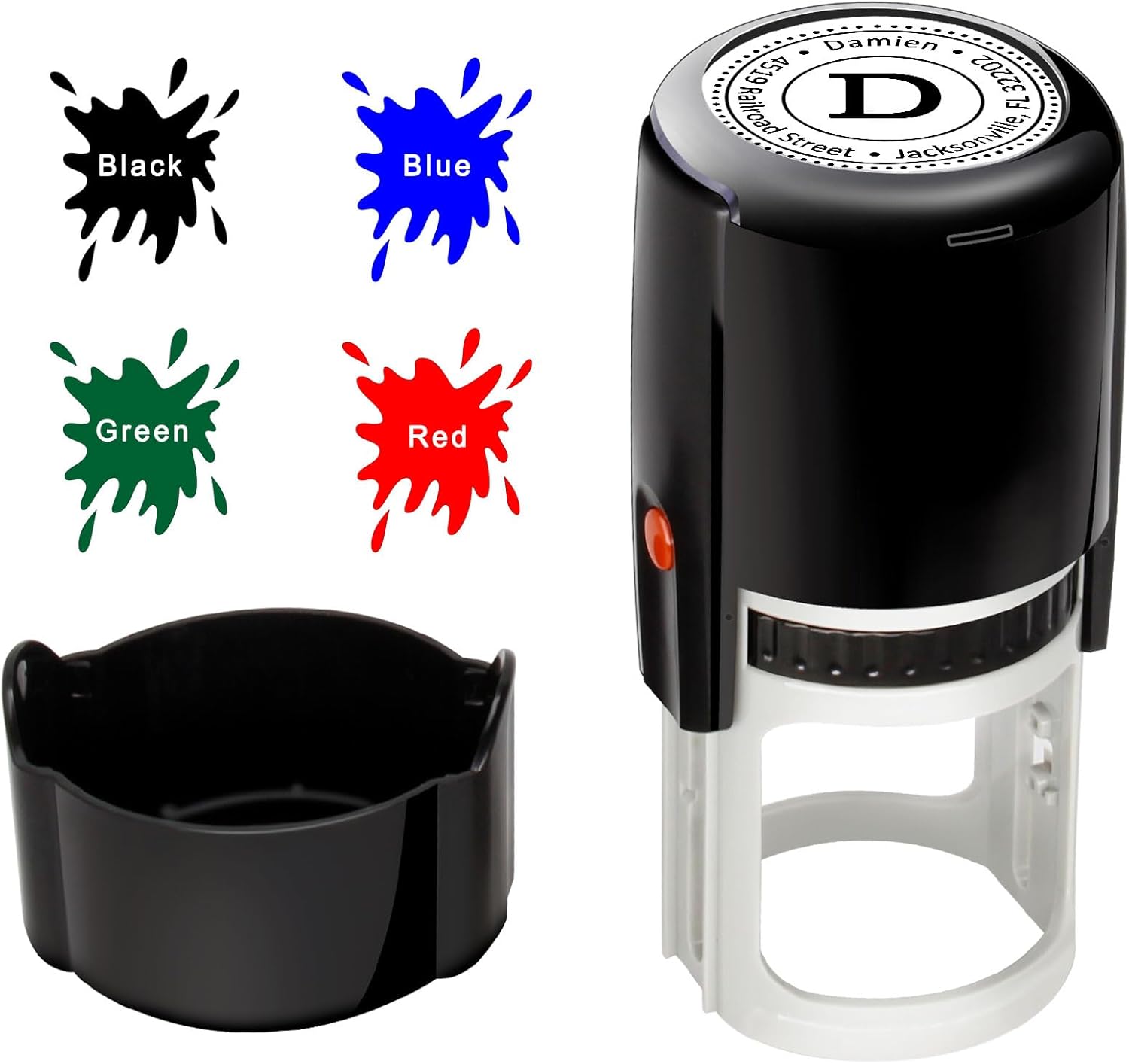 Custom Round Stamp Personalized Self-Inking Rubber Stamps Customized Business Label Stamp Return Address Rubber Office Name Text Logo 4 Ink Color