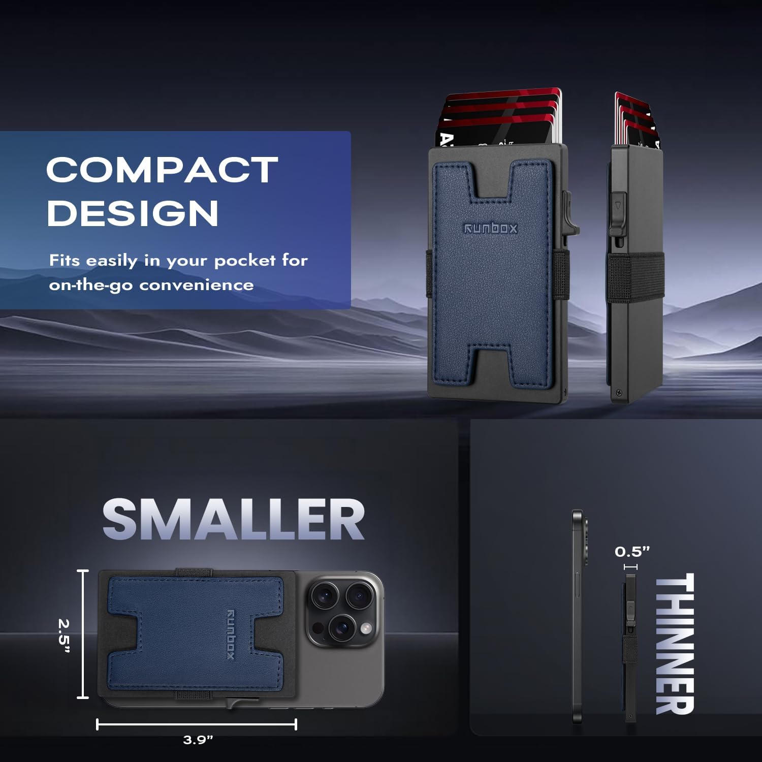 - SLIM WALLET FOR MEN with Ultra Thin & Lightweight Design: At just 0.5" thick and 2.6oz, this minimalist tactical wallet slips seamlessly into any pocket. Dimensions: 3.9"x2.5" – perfect for discrete everyday carry. The innovative expandable backplate adds storage without bulk, letting you ditch oversized wallets