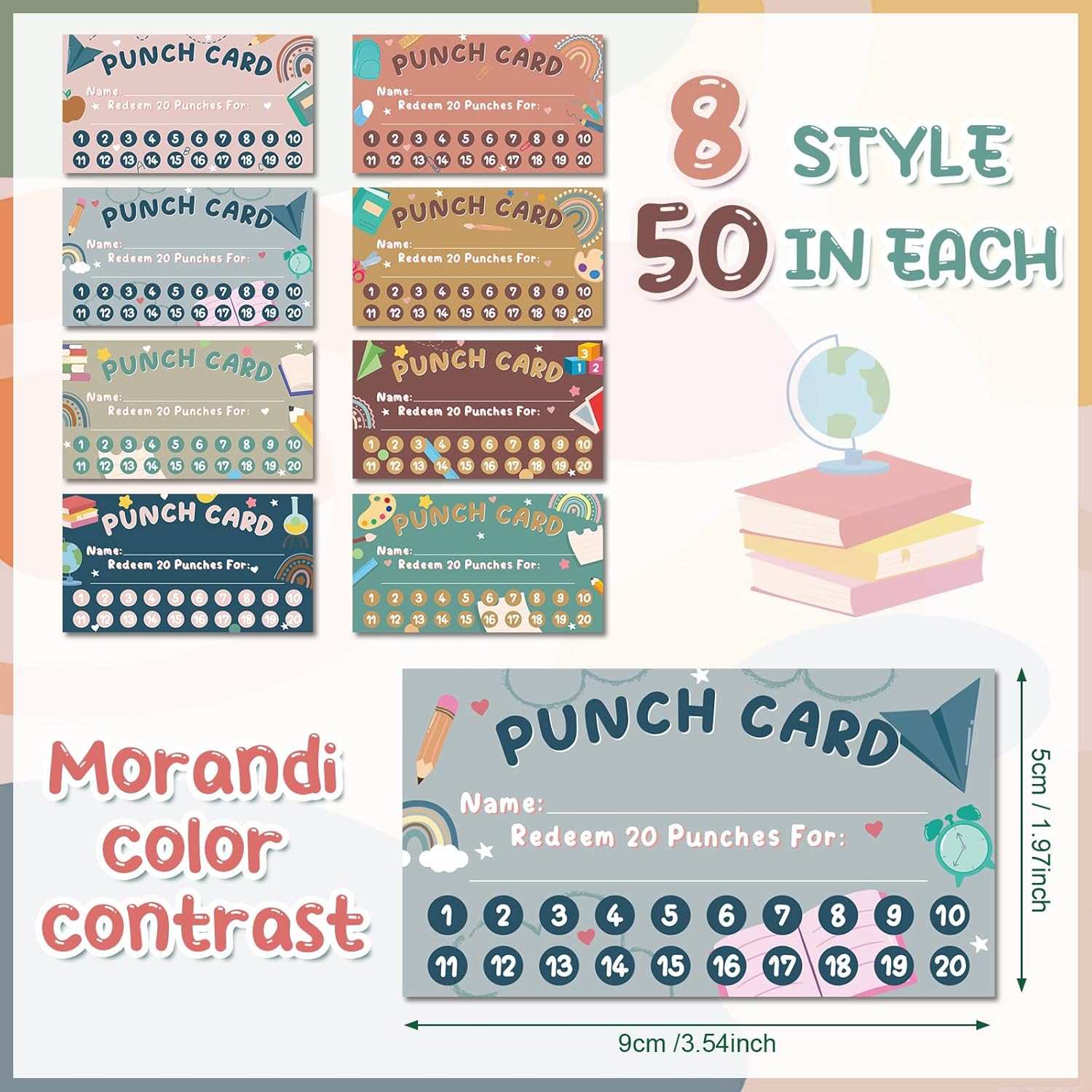 Fumete 400 Pcs Punch Cards for Classroom Reward Cards Behavior Incentive Loyalty Awards for Kids Students Teachers School Business, 8 Styles, 3.5 x 2 in(20 Morandi Punches Style)