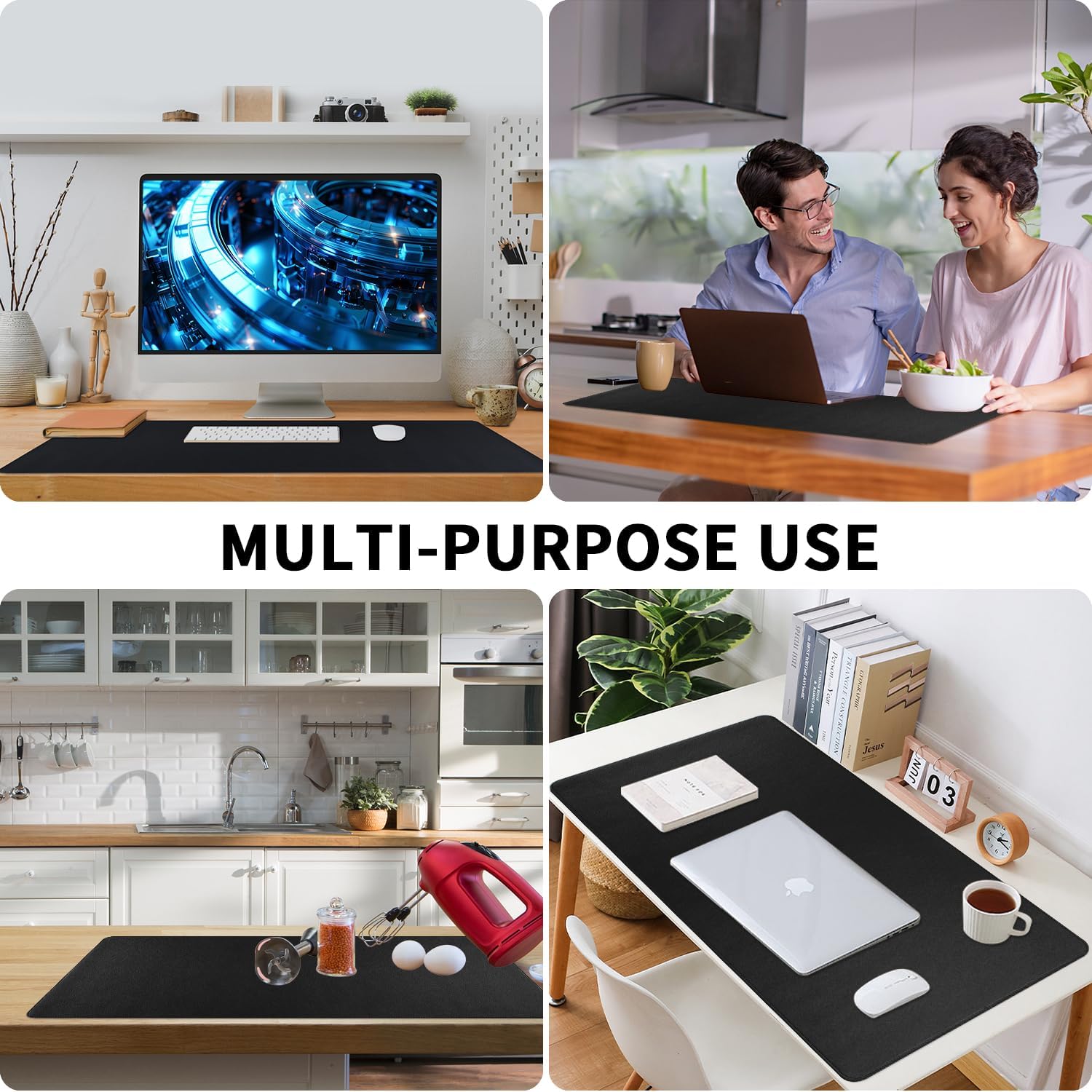 - 【Large Size Multipurpose】The 31.5×15.7 inch large size keyboard pad is large enough to hold a laptop, mouse, keyboard and mug. 2mm thickness provides you with a comfortable soft touch, you can use it as a writing pad, desk pad, mouse pad or desktop organizer for kitchen and office.