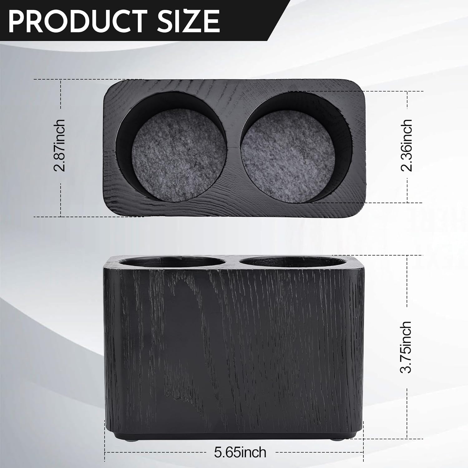 Oak Solid Wood Pen &Pencil Holder for Desk, Office Stationery Organizer, Table Pencil Cup Stand,Desk Accessories Holder, Two Cups Practical Design. (Char Black)