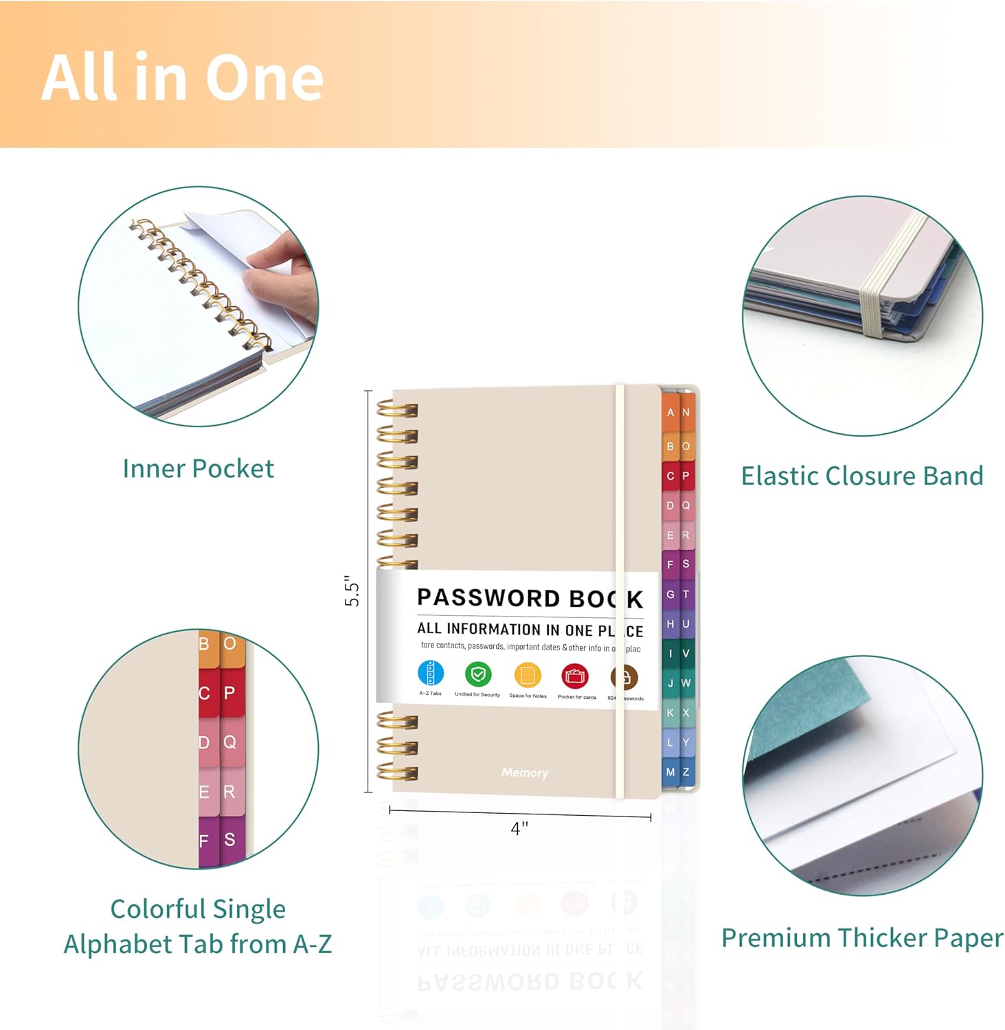 - All-in-One Password Keeper Book with Colorful Tabs: This mini password keeper book features easy-to-use alphabetical tabs for quick access to up to 468 logins, making it perfect for those who need a reliable and organized way to store passwords