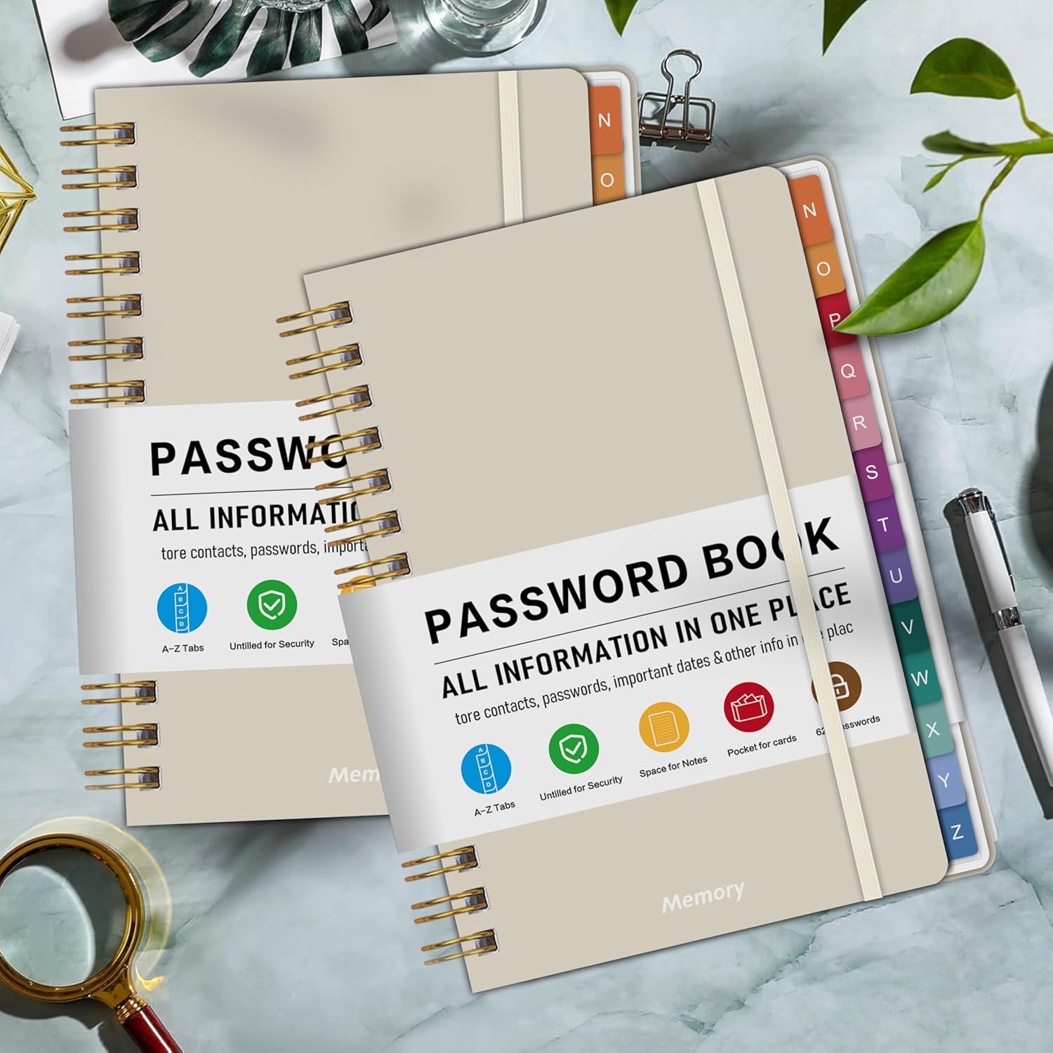 - Sturdy Spiral Password Notebook with Ample Writing Space: Built with a durable spiral binding and 100GSM thick pages, this password notebook lays flat for easy writing. Each page provides generous space for usernames, passwords, and hints. The "hints" design can better keep your password confidential and prevent it from being leaked
