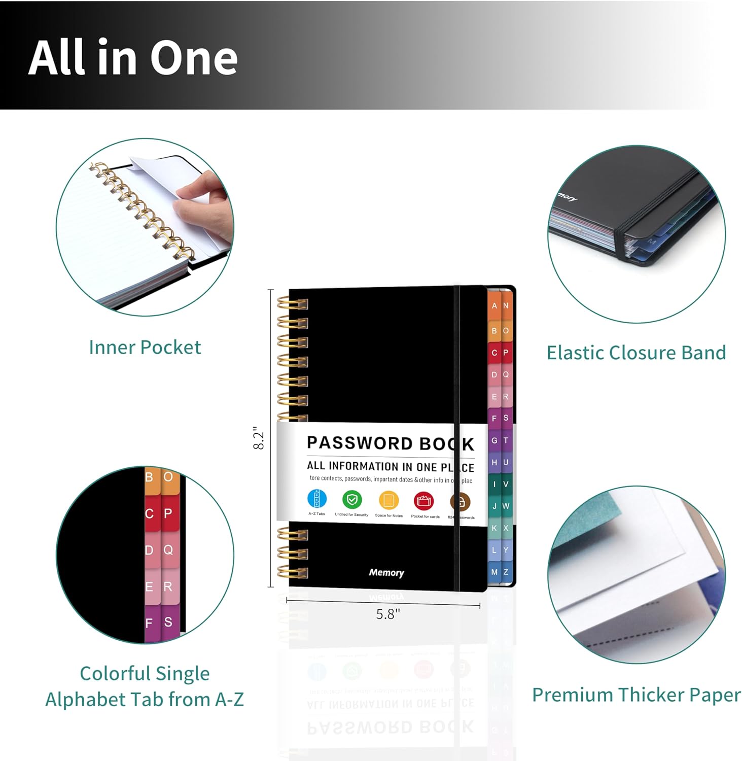 - All-in-One Password Keeper Book with Colorful Tabs: This password keeper book features easy-to-use alphabetical tabs for quick access to up to 450 logins, making it perfect for those who need a reliable and organized way to store passwords(Note: There is no password page following the Z label of the product. You can write it on the NOTES pages)
