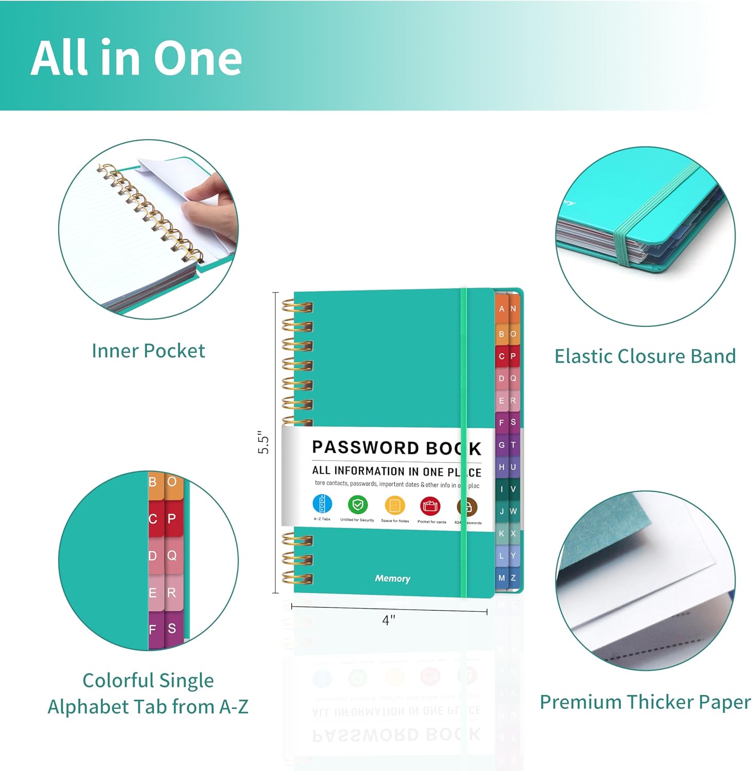 - All-in-One Password Keeper Book with Colorful Tabs: This mini password keeper book features easy-to-use alphabetical tabs for quick access to up to 468 logins, making it perfect for those who need a reliable and organized way to store passwords