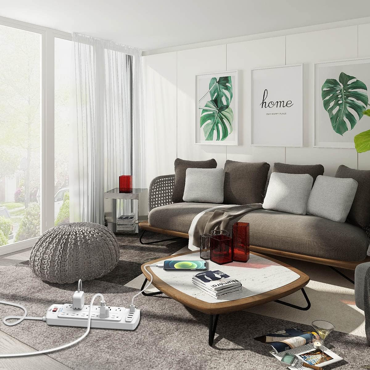 - 【Safety and Certificate】- ETL safety certified, with extension cord and other major components certified by UL. The over current protection switch limits the power strip's working current to certain setting, so it will not get hot during usage. Environmental protection and fire-resistance PC shell with flame retardant at 1382℉ makes it more durable and longer lifetime.