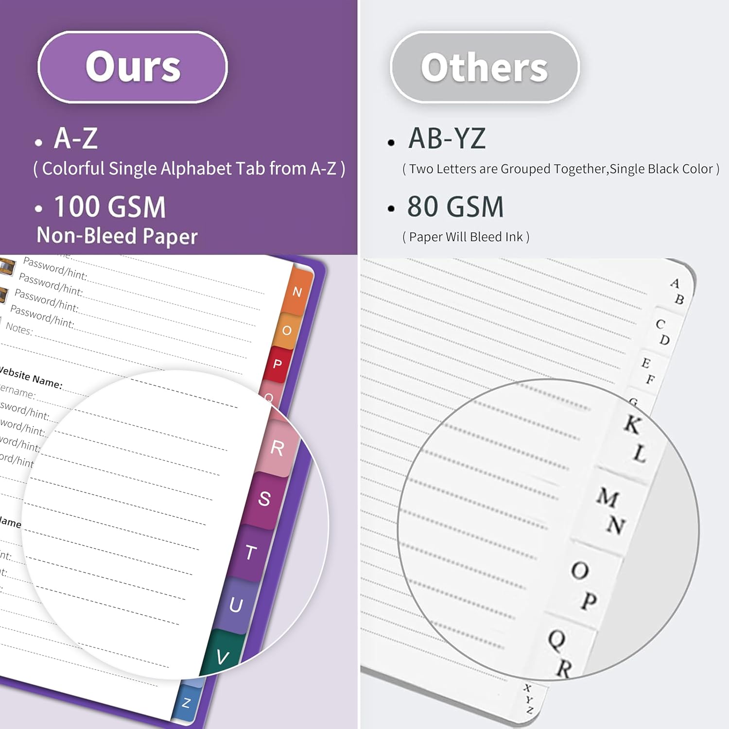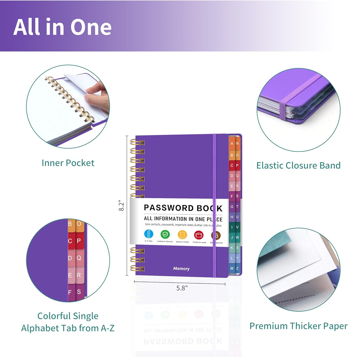 - All-in-One Password Keeper Book with Colorful Tabs: This password keeper book features easy-to-use alphabetical tabs for quick access to up to 450 logins, making it perfect for those who need a reliable and organized way to store passwords(Note: There is no password page following the Z label of the product. You can write it on the NOTES pages)
