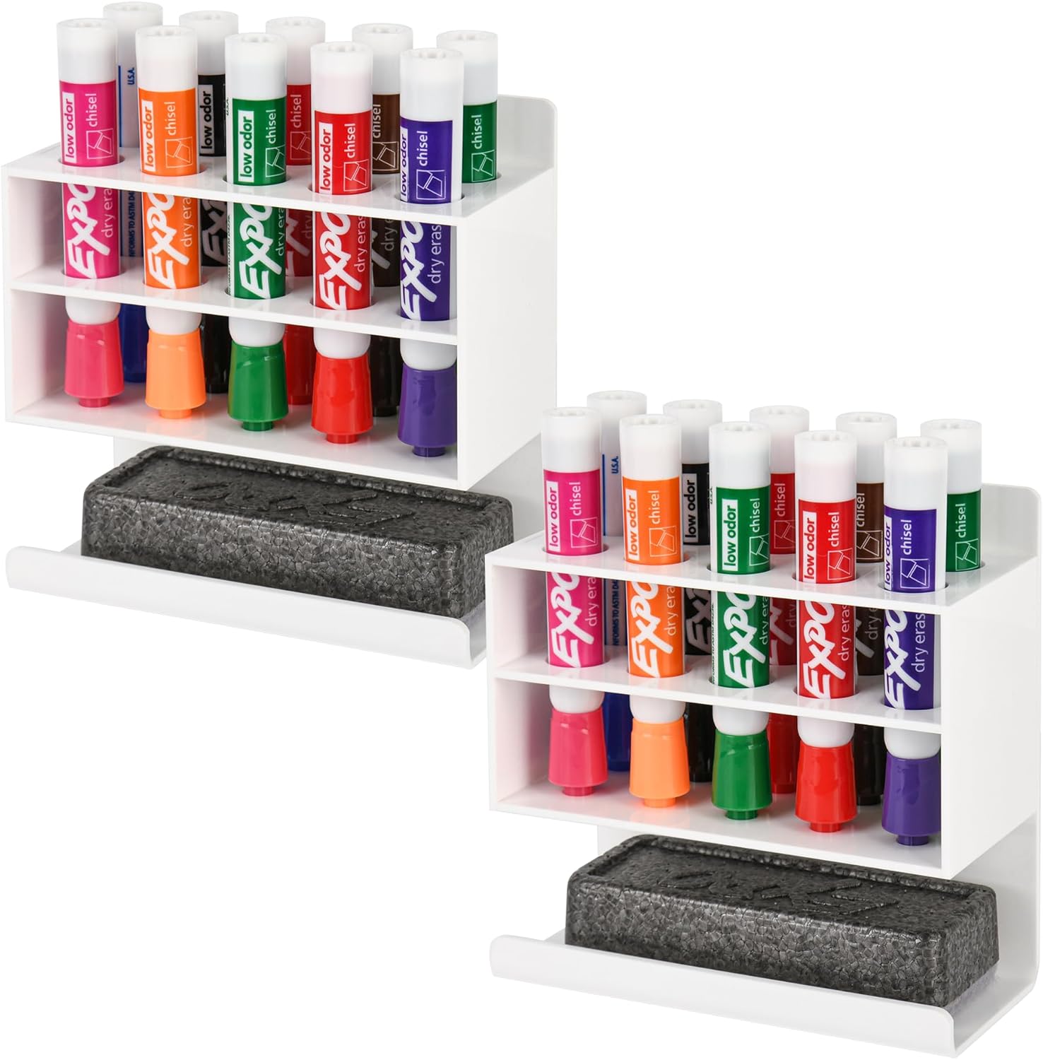 - 【Versatile Application】Crafted from high-quality white acrylic material, our wall mounted dry erase marker and eraser organizer will perfectly fit classrooms, conference rooms, or home. This whiteboard marker holder could meet all you need in the classroom organization, making all your markers, pens, pencils, erasers, office accessories well-organized.