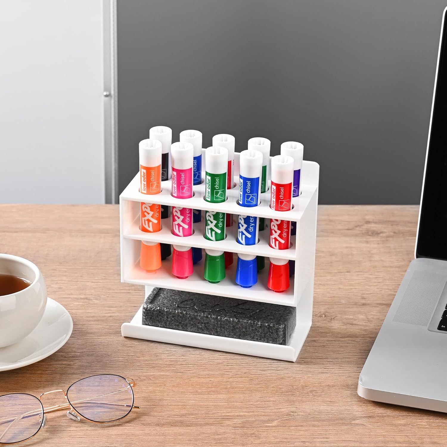 - 【Simplistic & Elegant Marker Holder】The VieFantaisie 10 slots dry erase marker holder showcases a polished surface. Its elegant design perfectly complements your office or classroom, enhancing the overall aesthetics of your workspace. The 2-tier design features holes in the bottom tray perfectly sized to hold the tips of standard dry erase markers securely in place.
