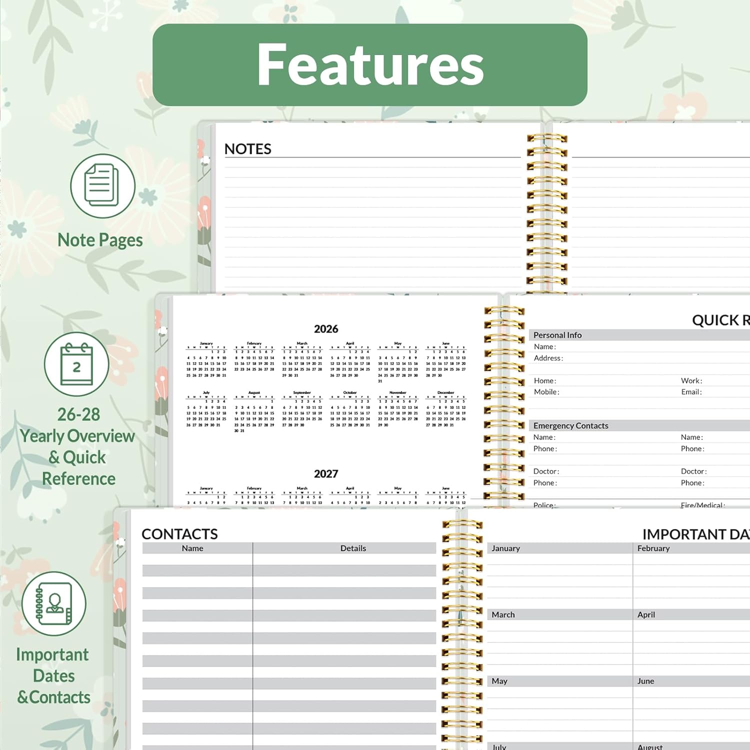 SUNEE 2026 Weekly and Monthly Planner - from January 2026 - December 2026, 8.5"x11" Daily Agenda Planner with Monthly Tab, Flexible Cover, Note Pages, Pockets, Bookmark, Green Wildflowers