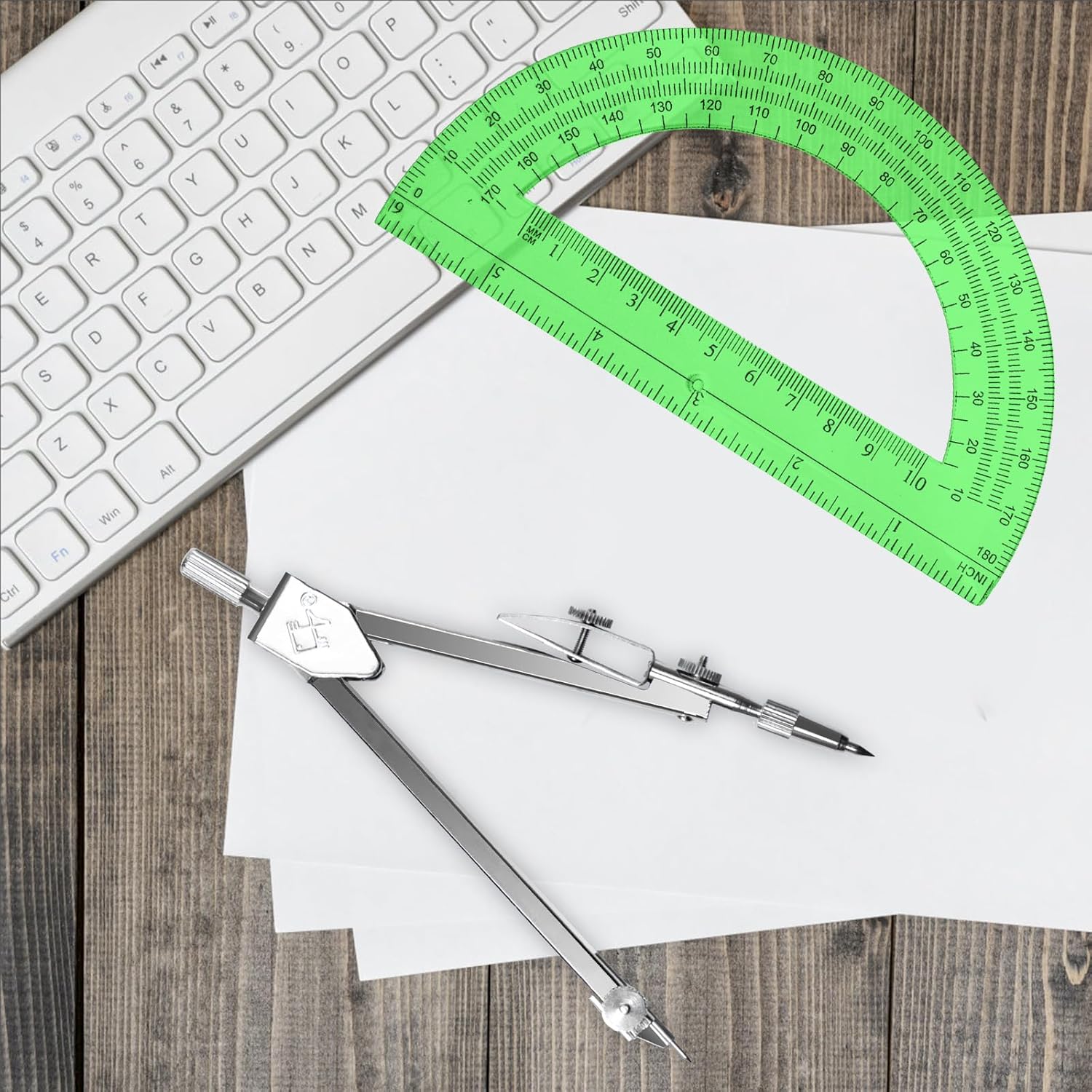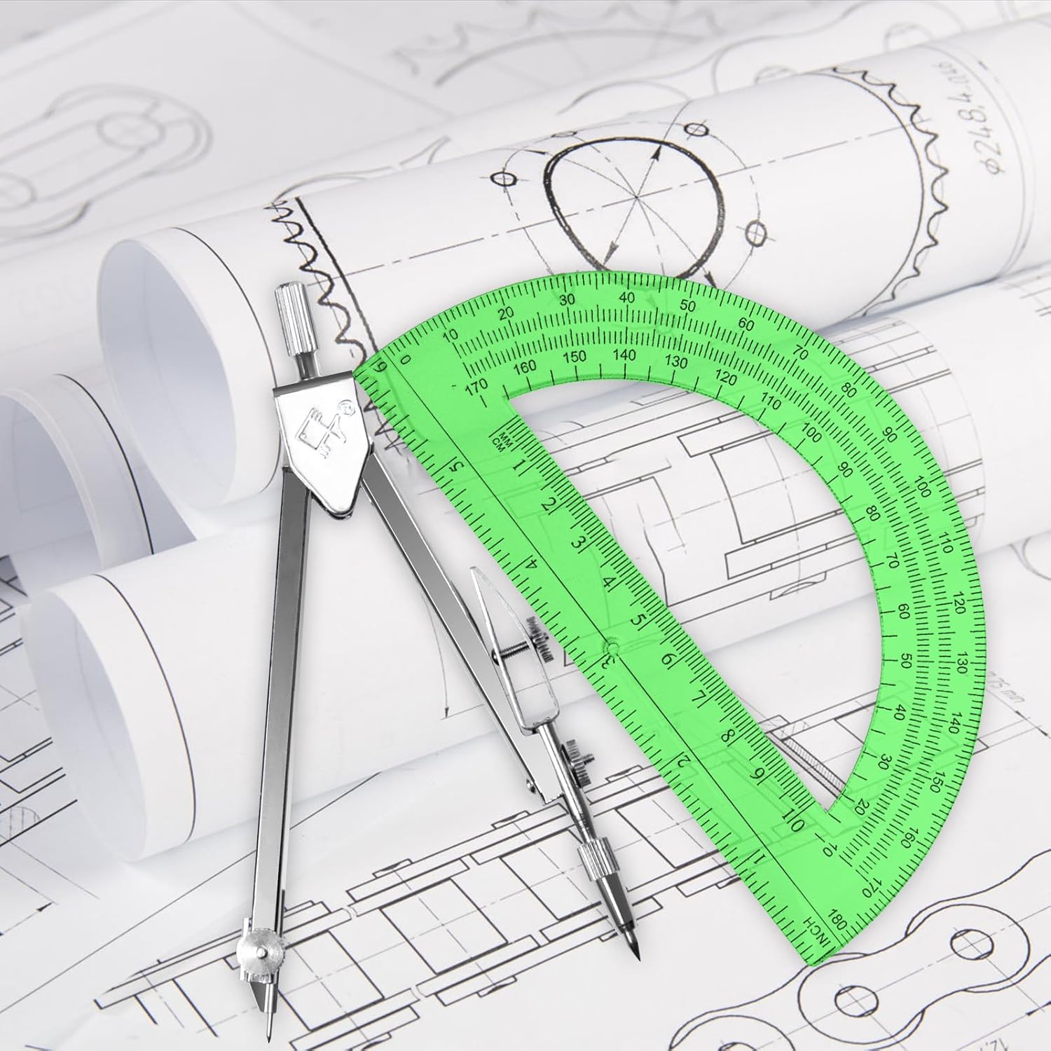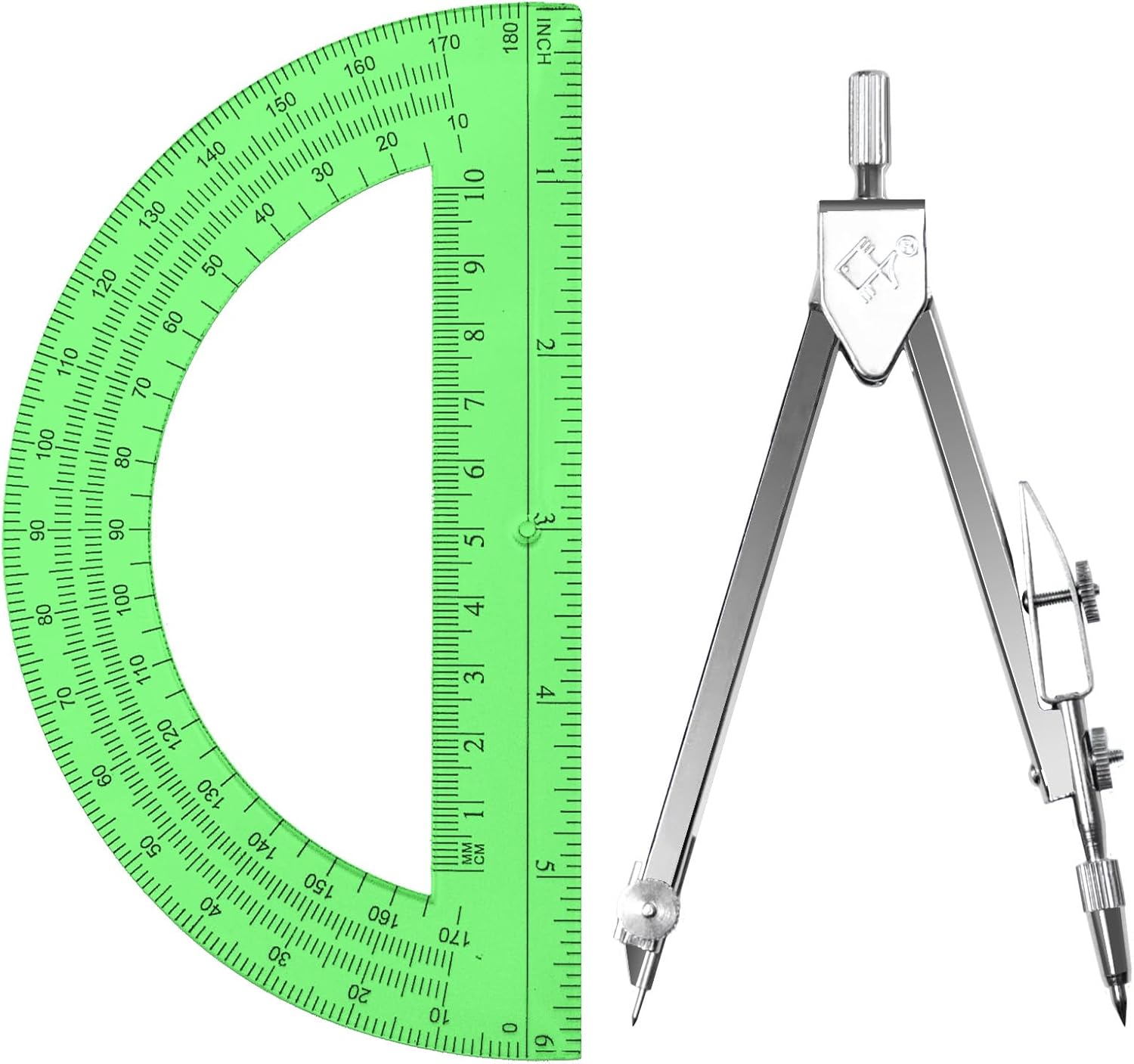 Students Geometry Math Set, Drawing Compass and 6 Inch Transparent Swing arm Protractor 180 Degree Math Protractor (Green)