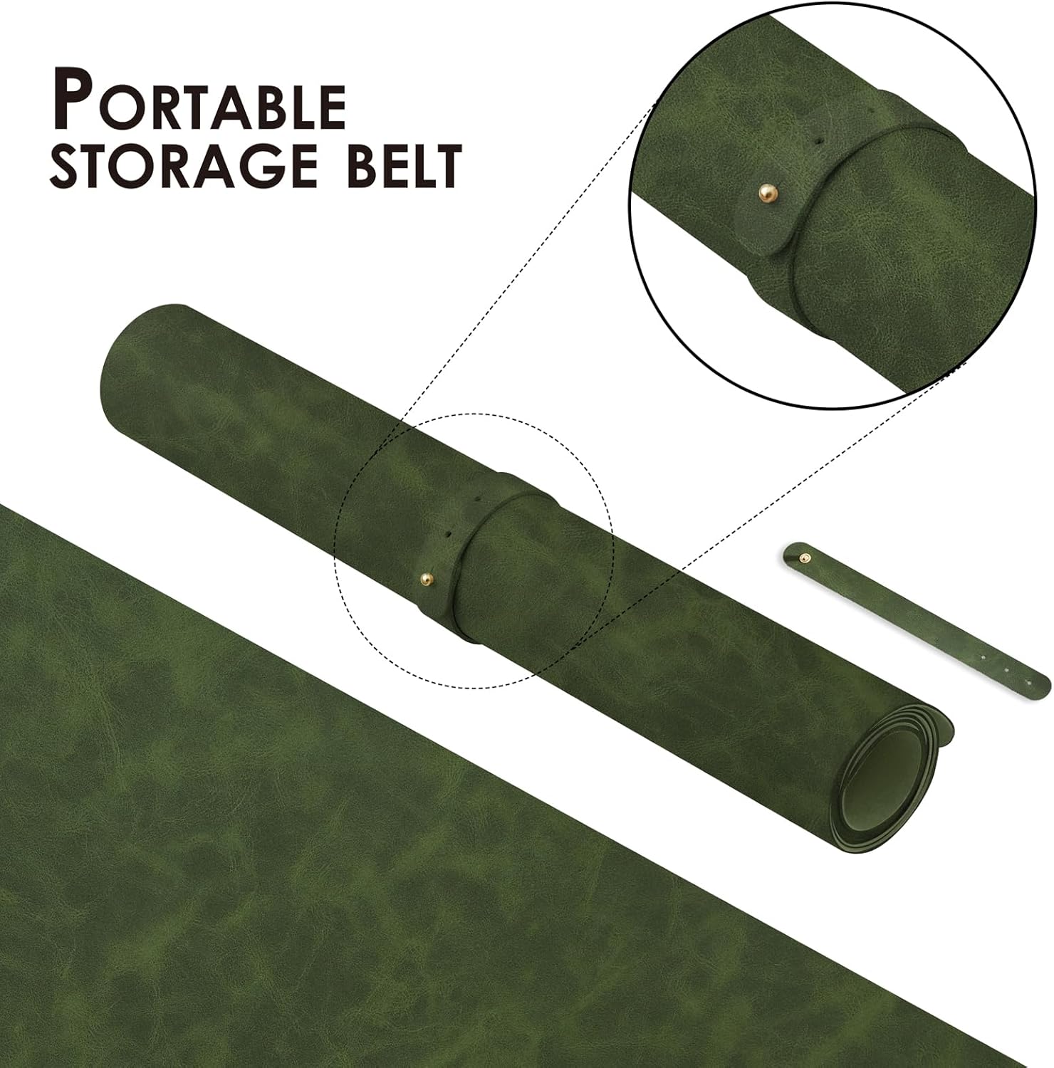 Distressed Leather Desk Mat - Non-Slip PU Desk Pad for Office and Home - Desk Organization and Accessories - Ideal for Large Mouse Pad and Desk Mats on Top of Desks(Forest Green,27.6"x 13.8")