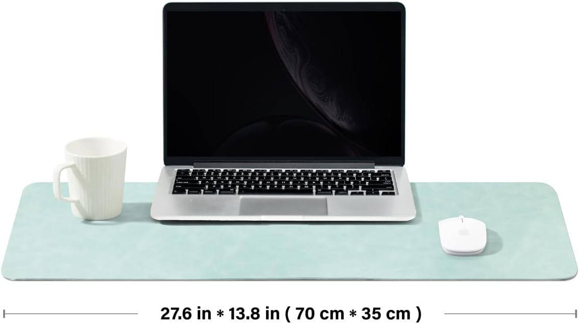 Distressed Leather Desk Mat - Non-Slip PU Desk Pad for Office and Home - Desk Organization and Accessories - Ideal for Large Mouse Pad and Desk Mats on Top of Desks(Mint Green,27.6"x 13.8")