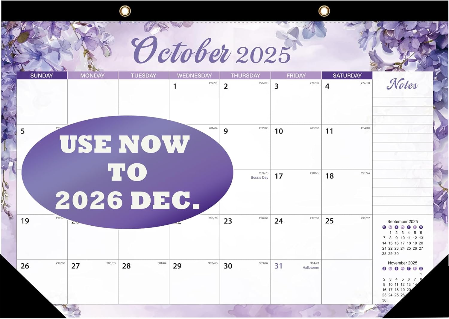Desk Calendar 2025-2026 Julian Date July 2025 to December 2026, 18 Month Calendar Large 17"x12" Student/Teacher/School Desk/Wall Hanging Calendar (Floral)