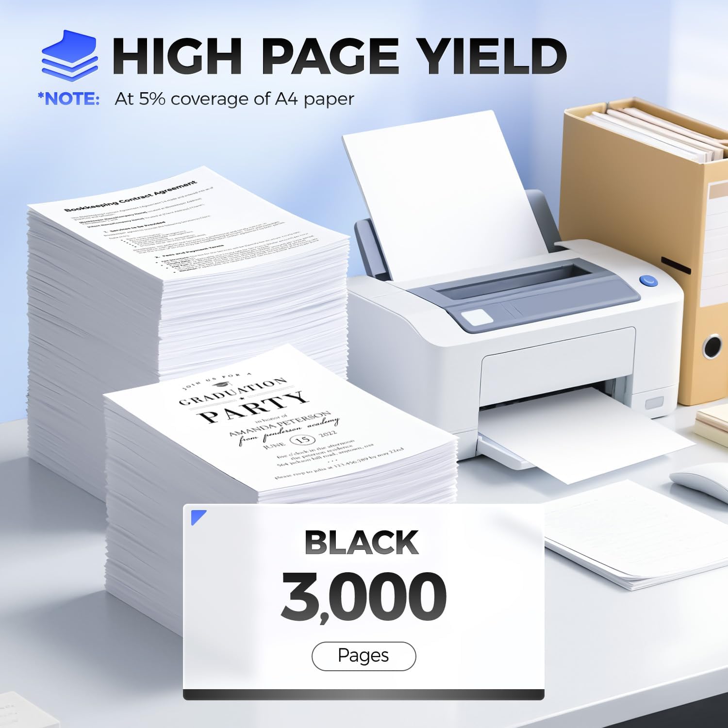 - High Page Yield: Up to 3,000 pages per B231000 Black Toner Cartridge,(at 5% coverage of A4 Paper), High Yield Version B231000 Toner Cartridge.
