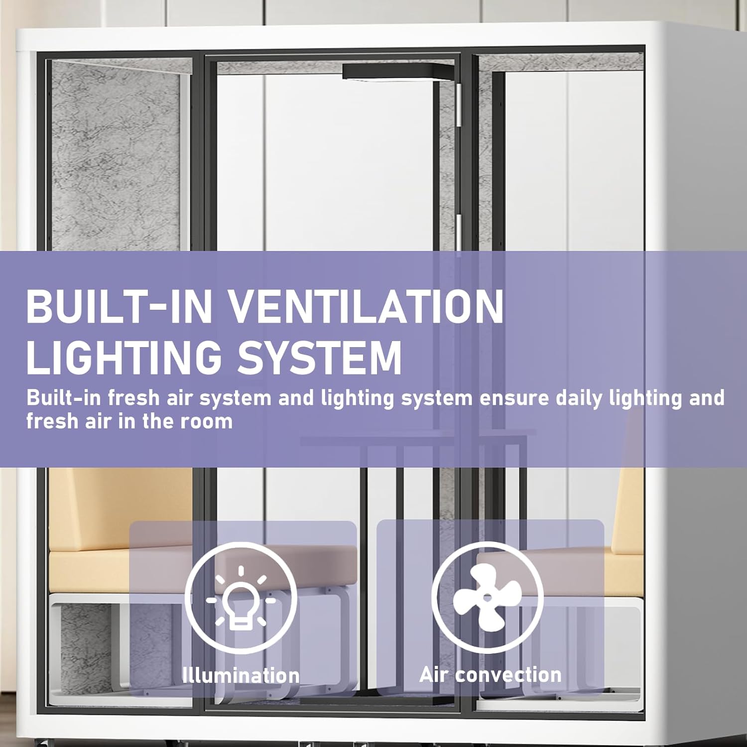 Office Sound Booth with Audio Privacy - Smart Soundproof Booth with White Modern Style,Movable Room with Light,Ventilation,Socket for Small Studio,Live Streaming Room(82.67IN)