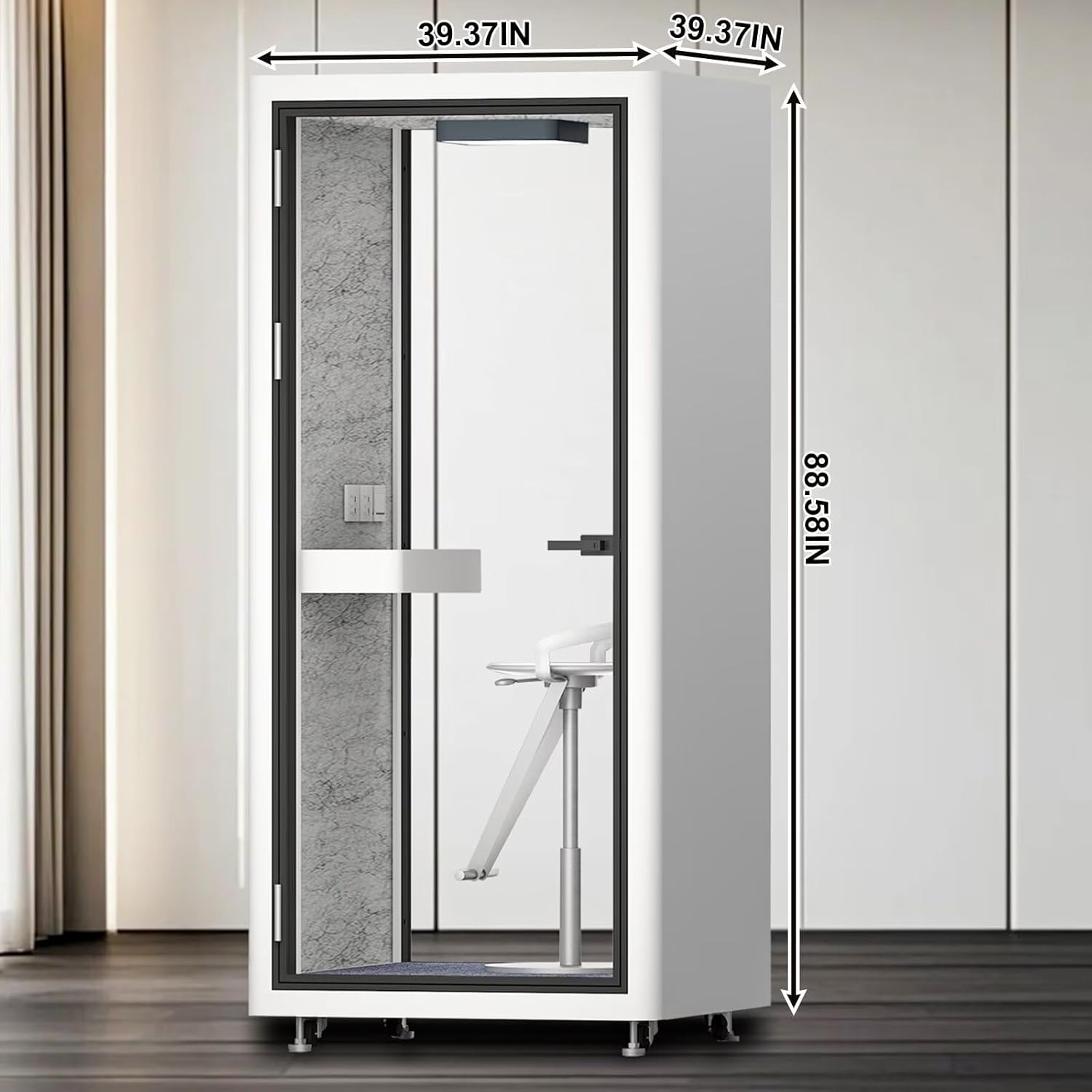 Office Sound Booth with Audio Privacy - Portable Soundproof Booth with White Modern Style,Movable Room with Light,Ventilation,Socket for Study,Singing Room,Telephone Booth(39.37IN)