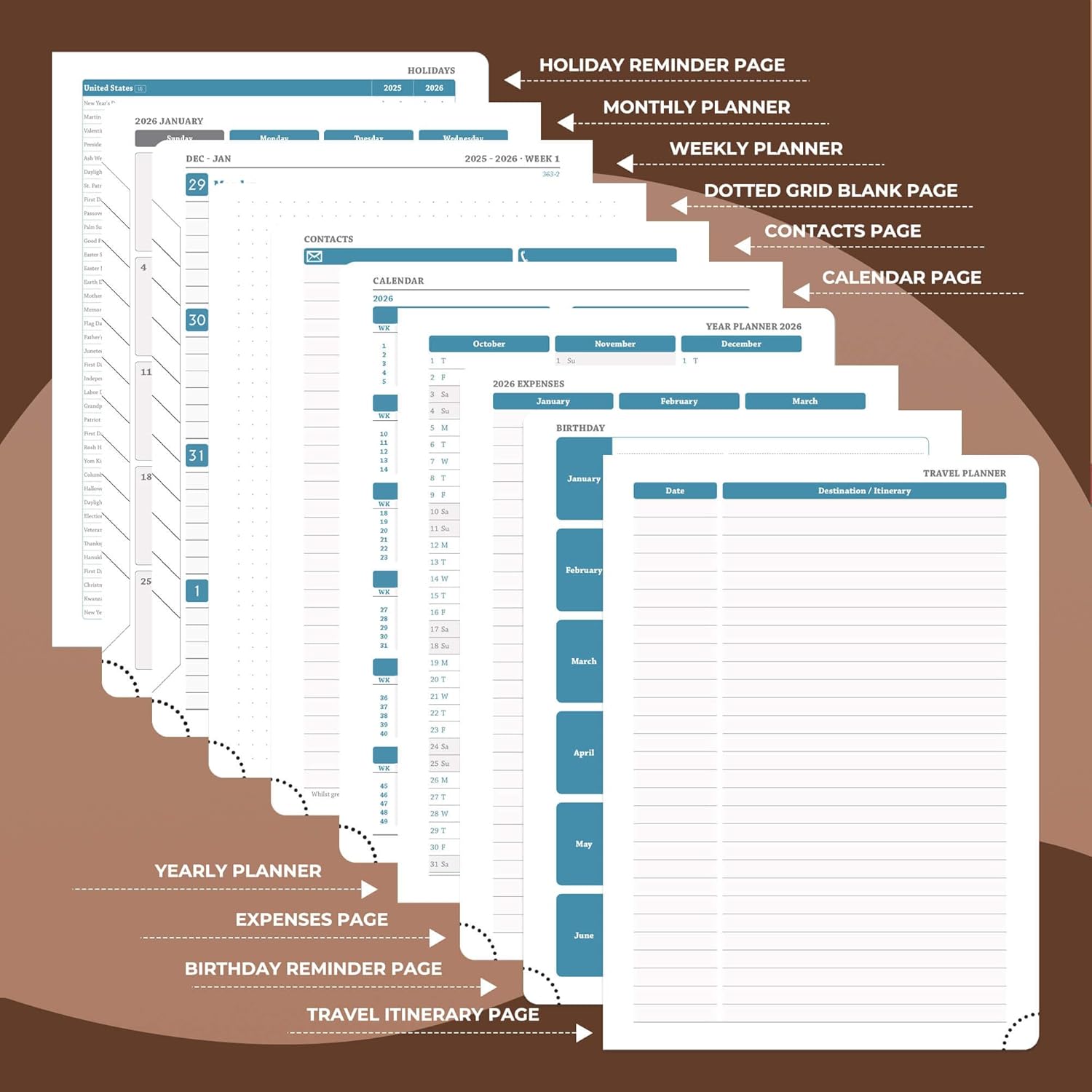 - Universal Design Planner: Suitable for a variety of people and scenarios. Professionals manage project progress, meeting arrangements and goals; student planner 2026 courses, exams and extracurricular activities; home users arrange travel, activitie